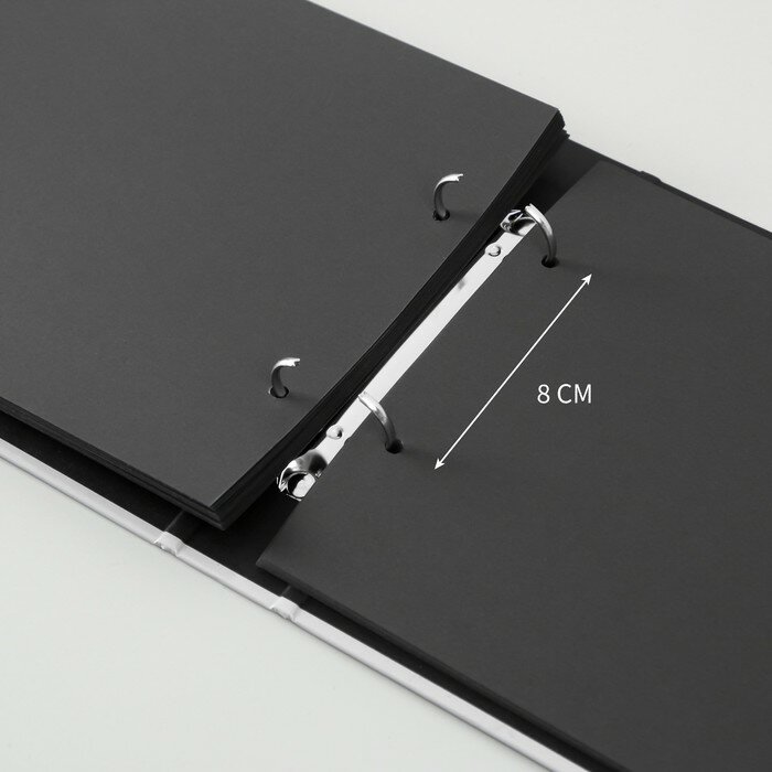 Фотоальбом на кольцах 30 листов "Фотоаппарат на плитке" чёрные листы 18х18 см