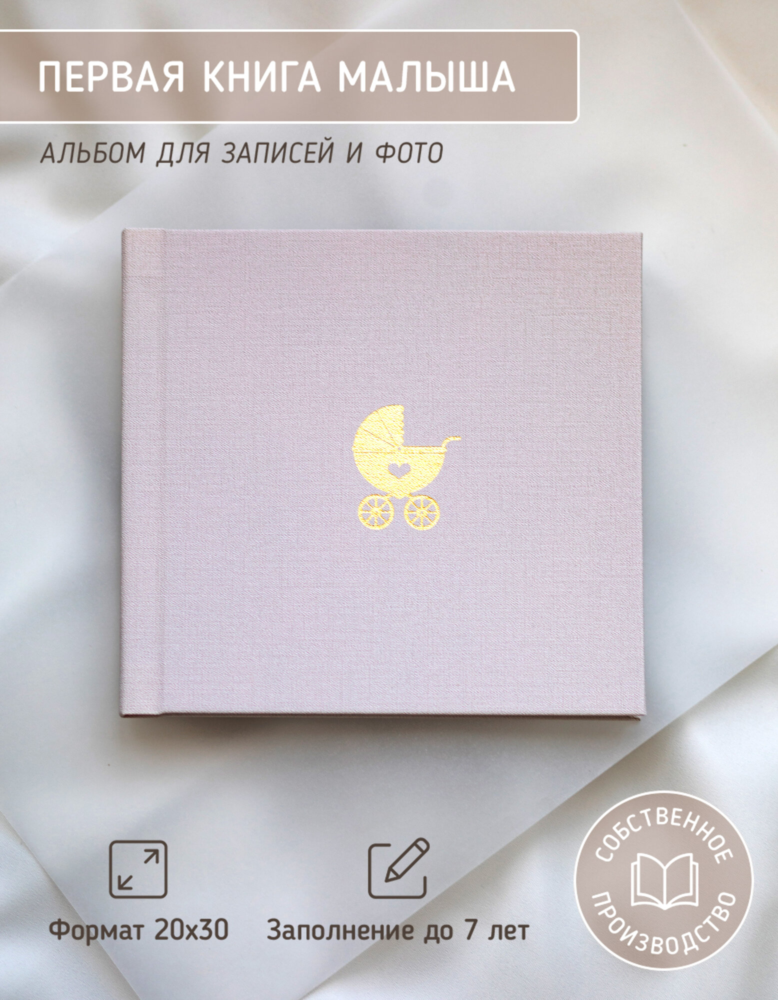 Фотоальбом Glorybook для новорождённого от 0 до 7 лет 20х20 пыльная роза интересное: