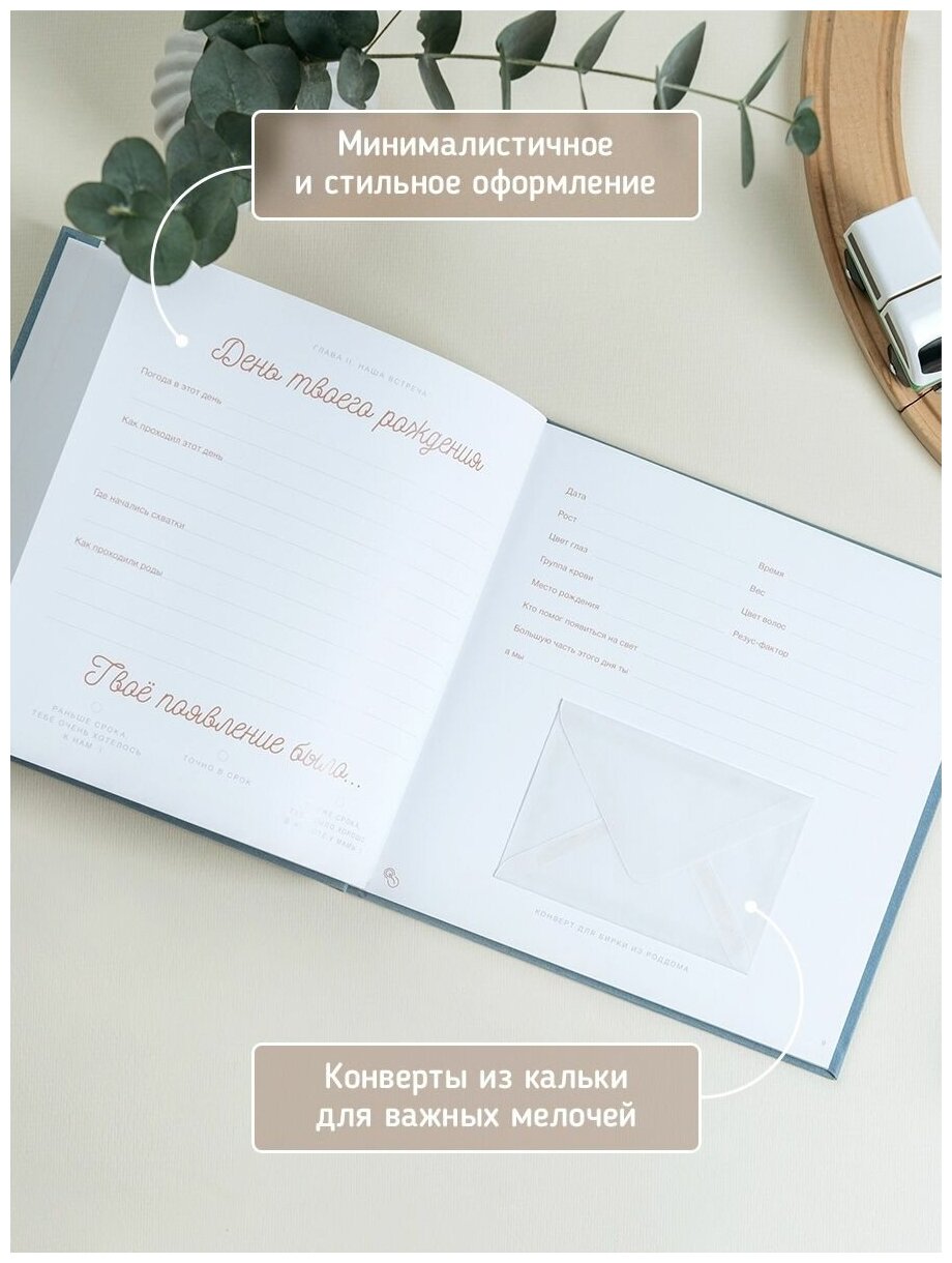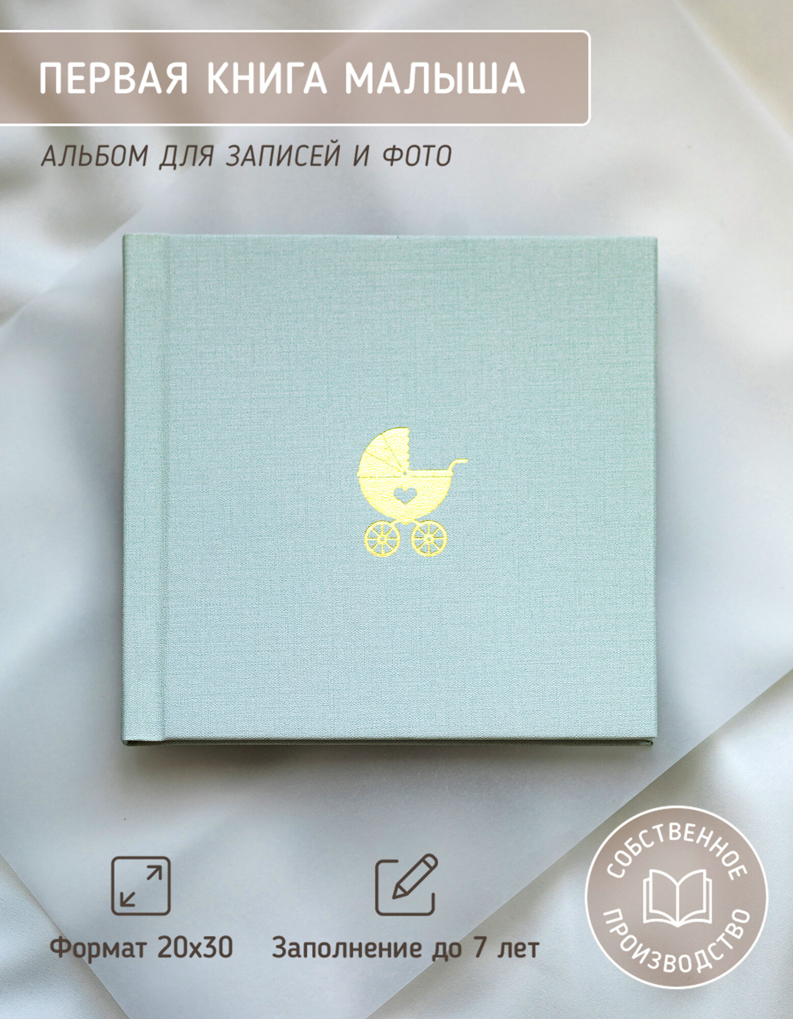 Фотоальбом Glorybook для новорождённого от 0 до 7 лет 20х20 мятный интересное: