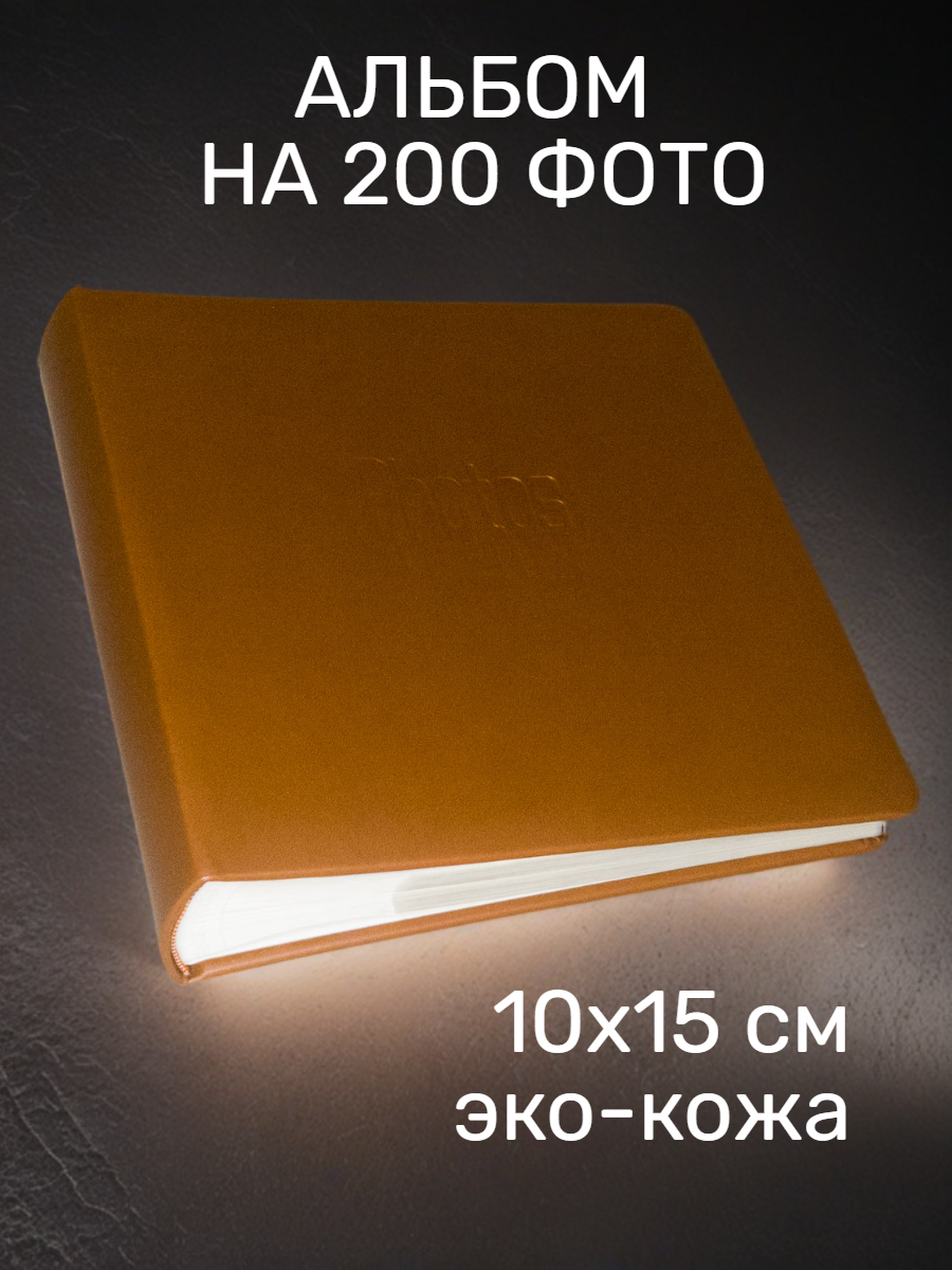 Фотоальбом коричневый на 200 фото 10х15 см, эко-кожа, кармашки интересное: