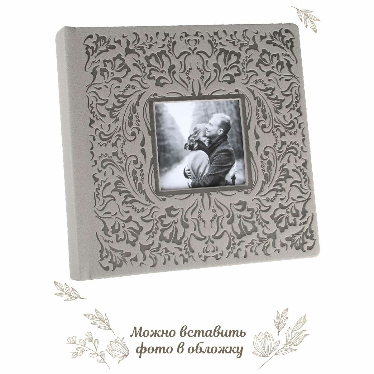 Фотоальбом из эко-кожи, двухцветный с вышивкой, 200 фото 10х15 см в кармашках