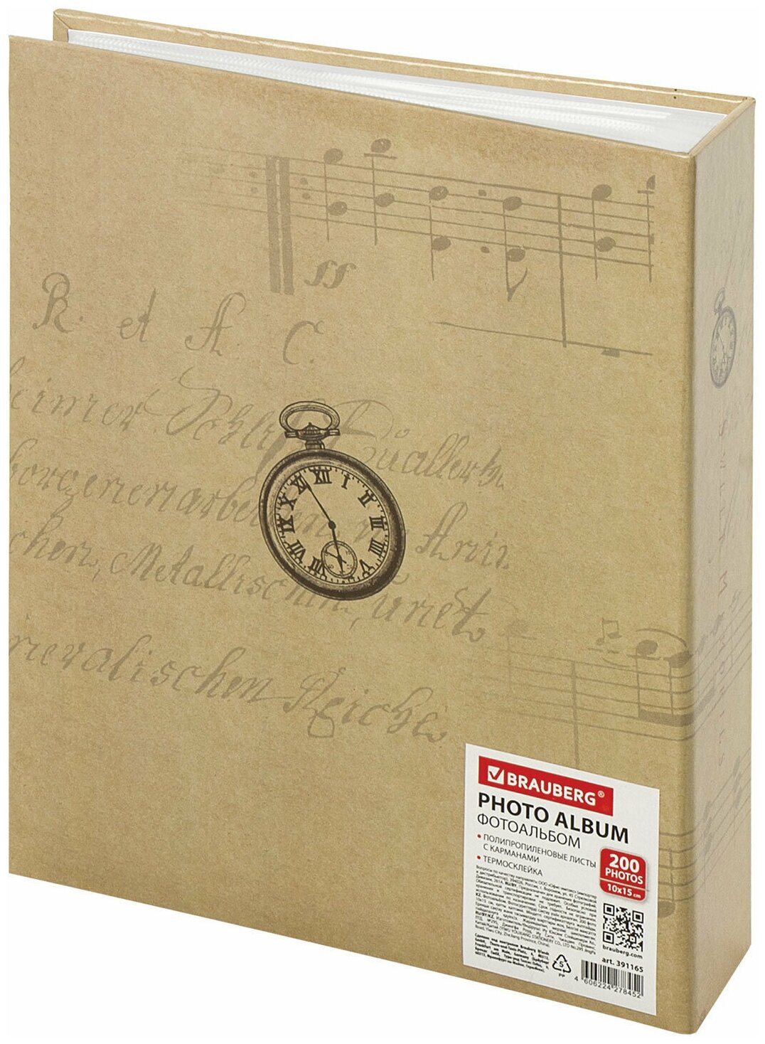 Фотоальбом BRAUBERG "Часы, крафт" на 200 фото 10*15 см, твердая обложка, термосварка, 391165 интересное: