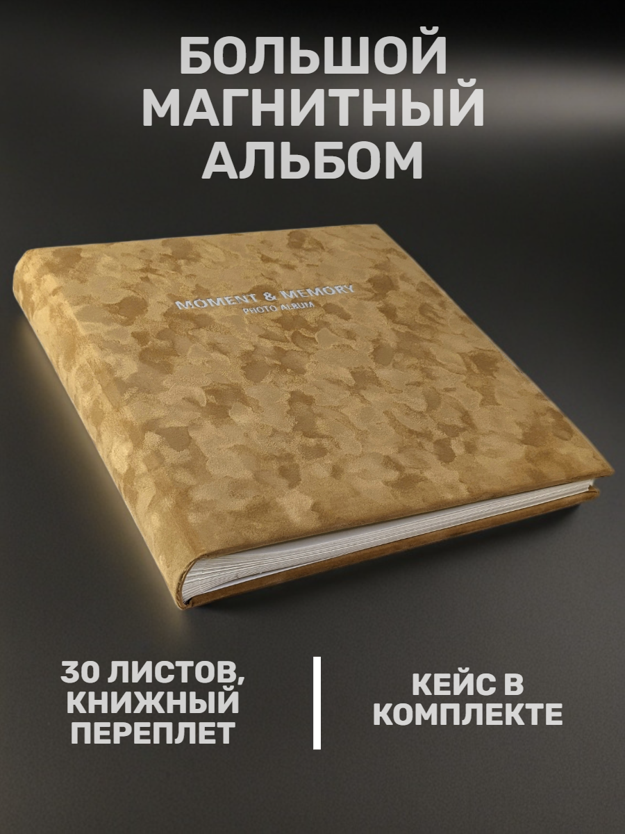 Фотоальбом «Памятные моменты», бежевая замша, 60 магнитных страниц 31х32 см, кейс интересное: