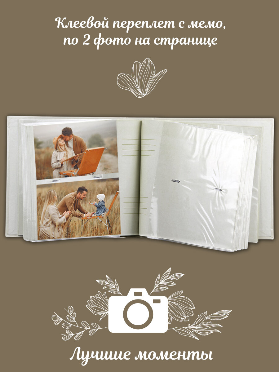 Фотоальбом из эко-кожи, двухцветный с вышивкой, 200 фото 10х15 см в кармашках