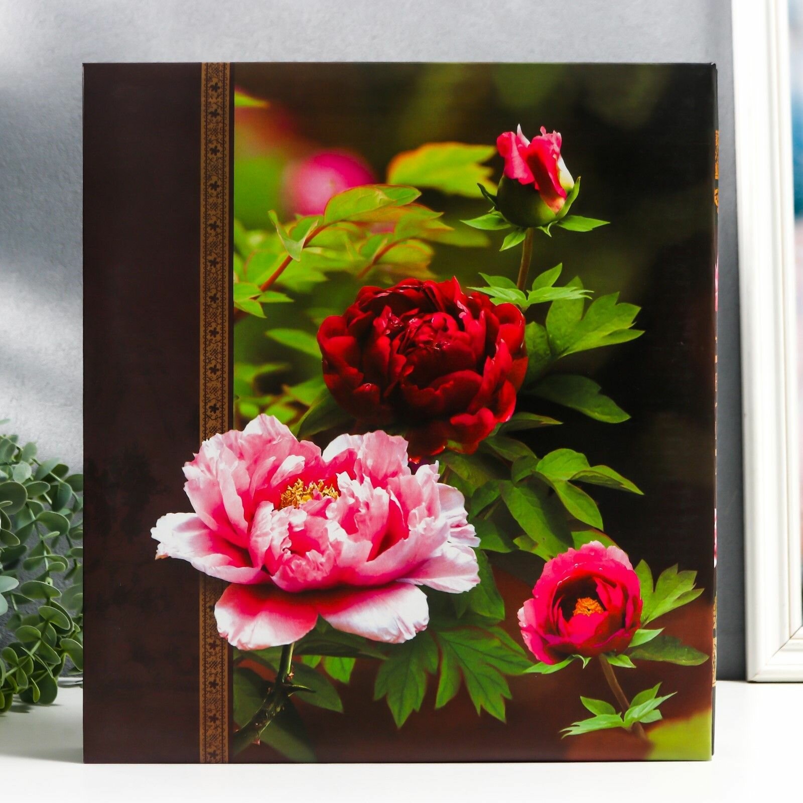 Купить Фотоальбом на 500 фото 10х15 см "Пионы" золот. обв, объем. эл, в коробке микс 33,5х30,5х5,7 см