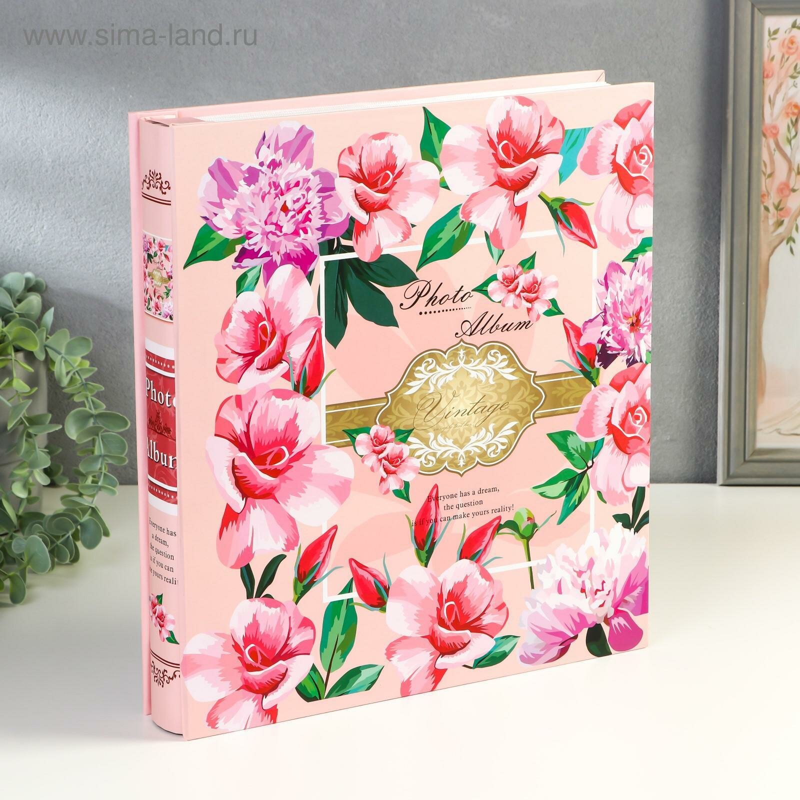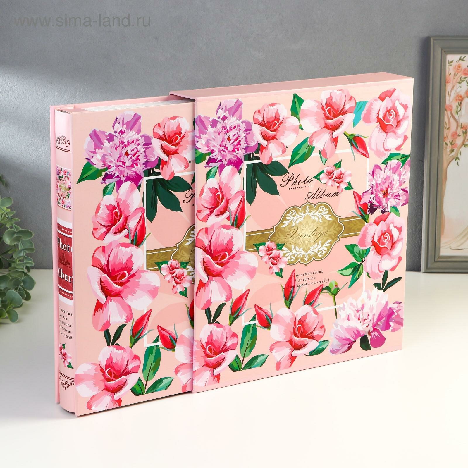 Фотоальбом на 100 фото 10х15 см "Пышные розовые цветы" в коробке микс 26,5х21х5,3 см