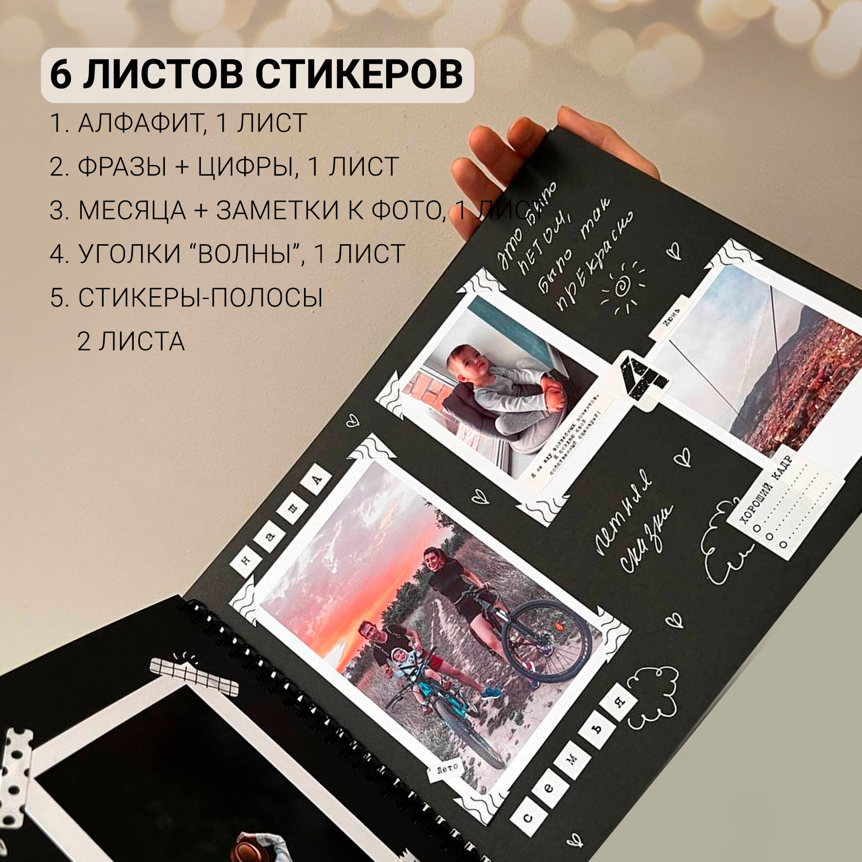 Фотоальбом CRAFT COPY крафтовый черный на пружине с набором стикеров 12 листов