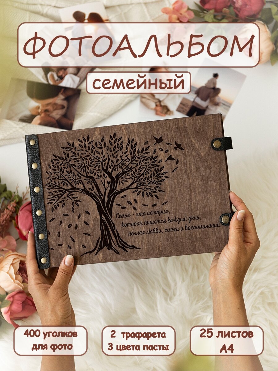 Фотоальбом "Семейный" , 10 x 15см, деревянный, 100 фотографий, ручной работы интересное: