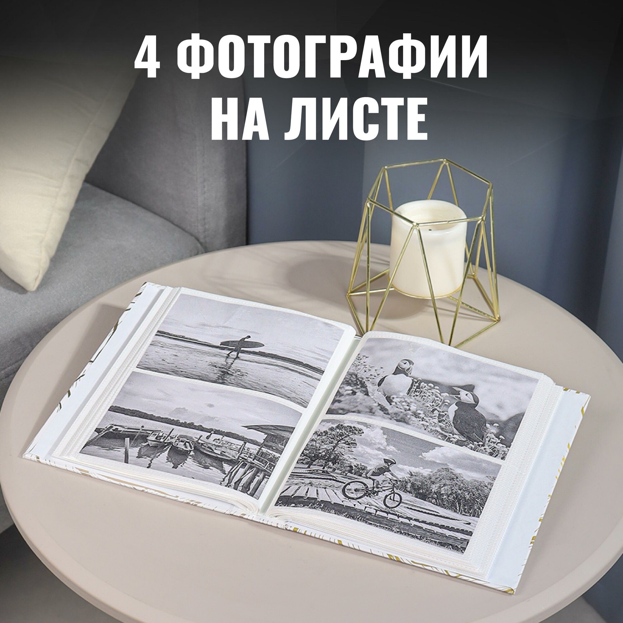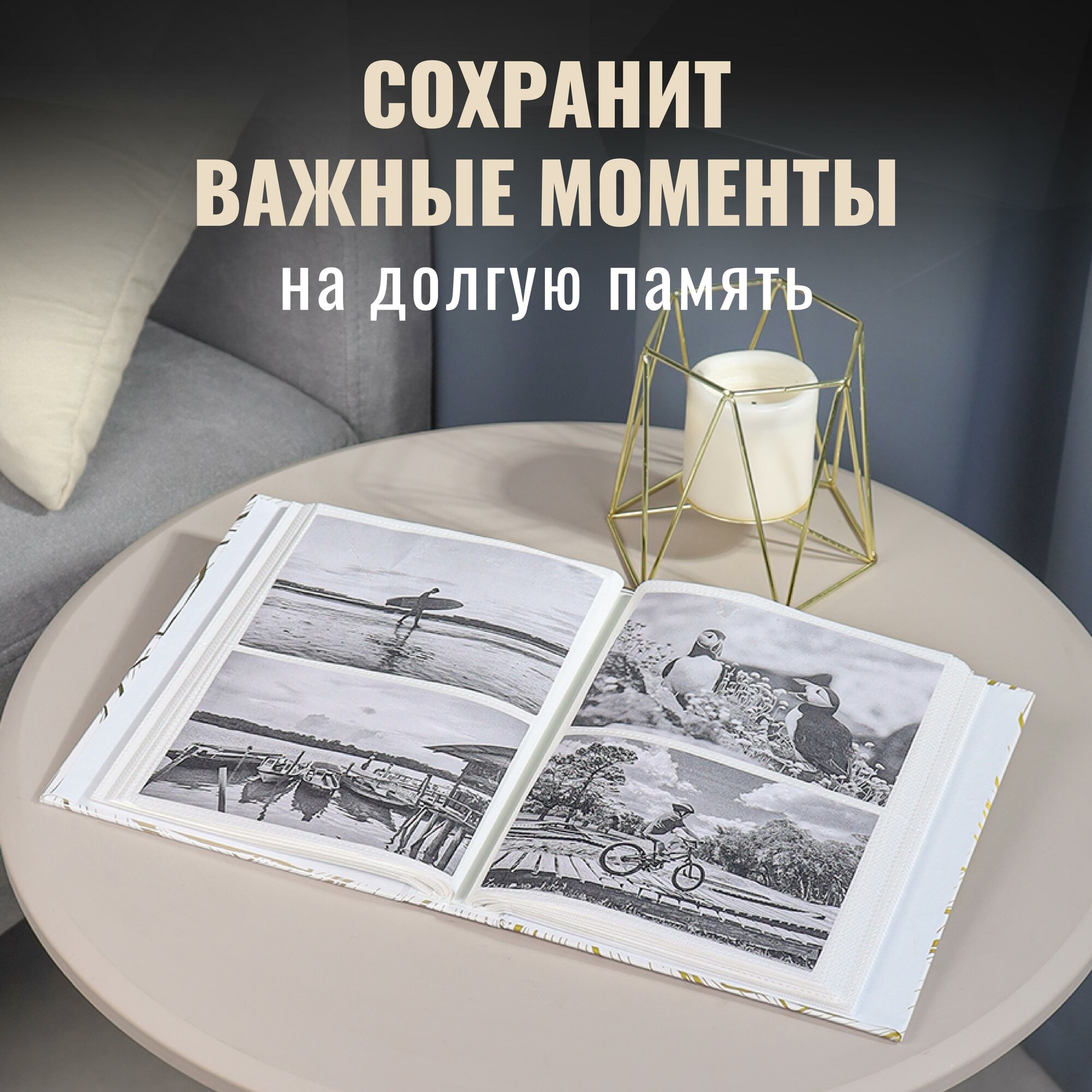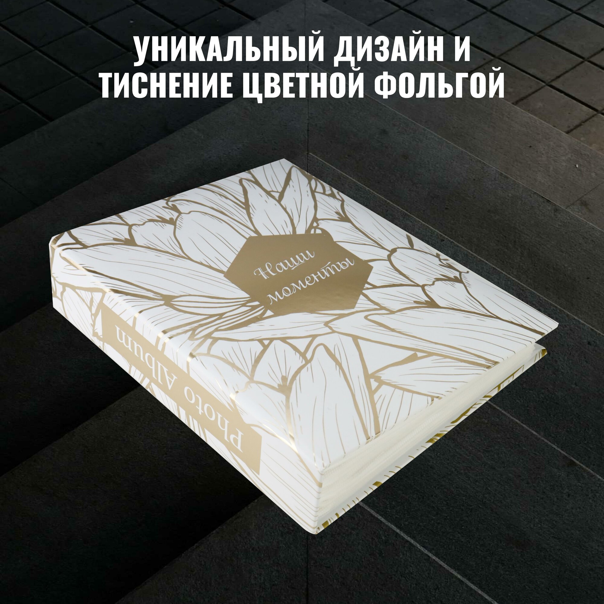 Фотоальбом с золотым тиснением "Моменты счастья" на 200 фотографий, 10х15, 50 листов с фольгированным тиснением, 17.5x22 см