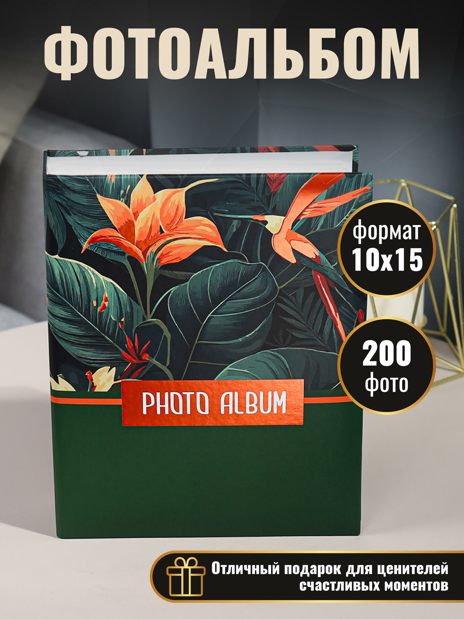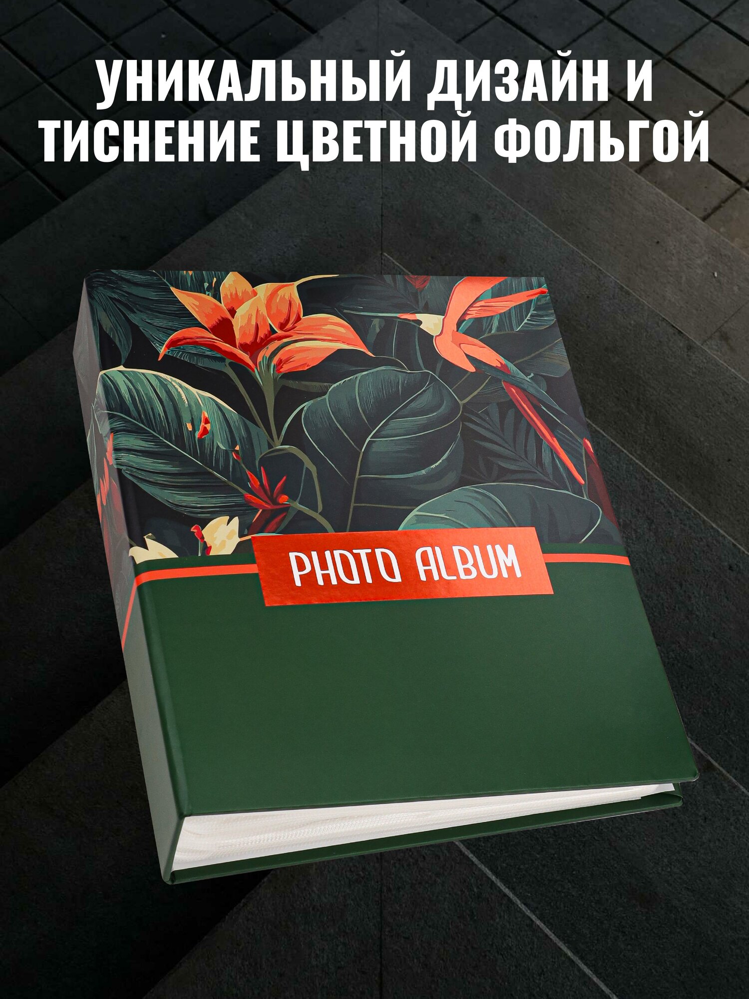 Купить Фотоальбом "Тропический колибри" на 200 фотографий, 10х15, 50 листов с фольгированным тиснением, размер альбома 17.5x22 см