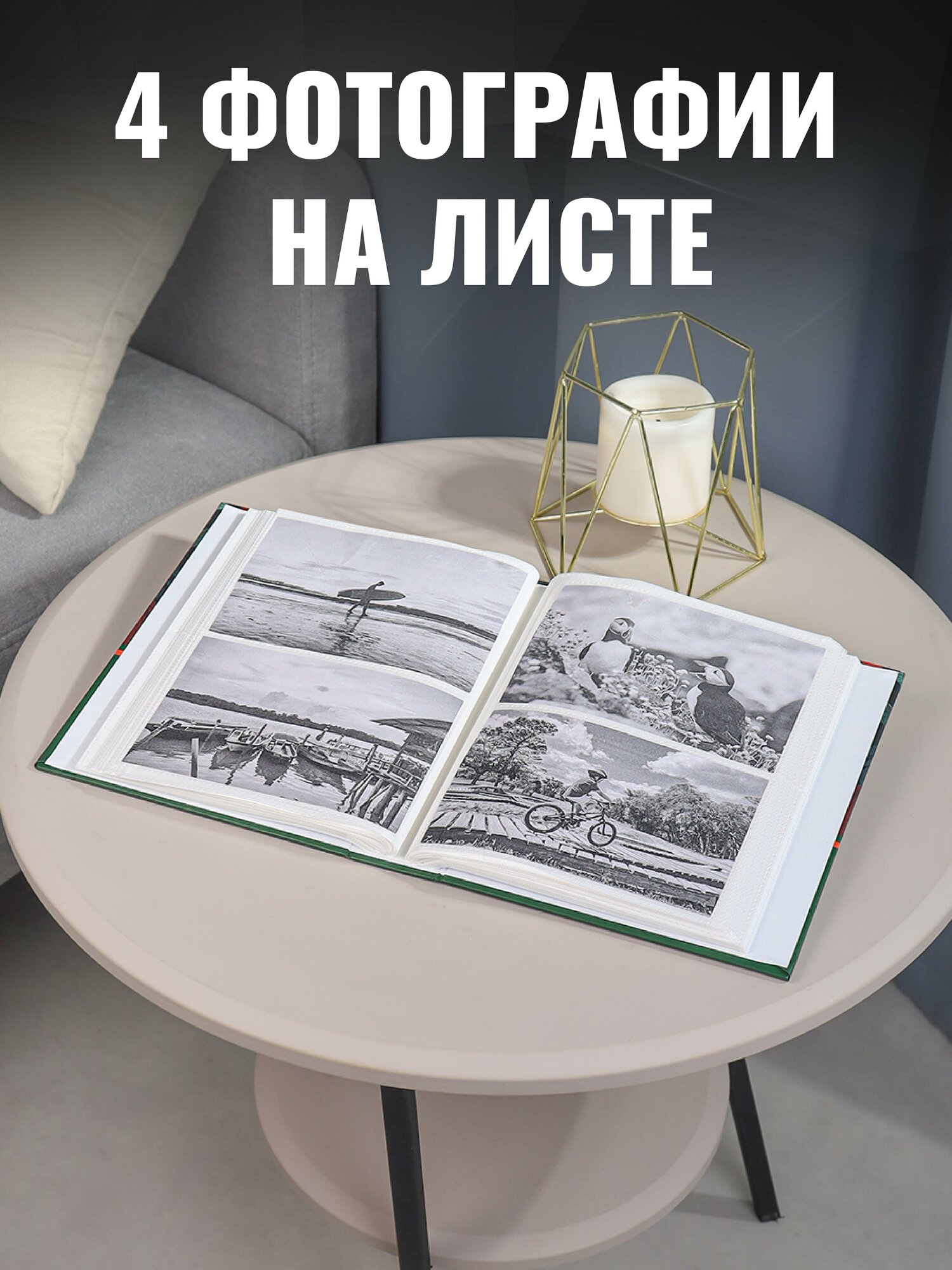 Фотоальбом из эко-кожи, двухцветный с вышивкой, 200 фото 10х15 см в кармашках