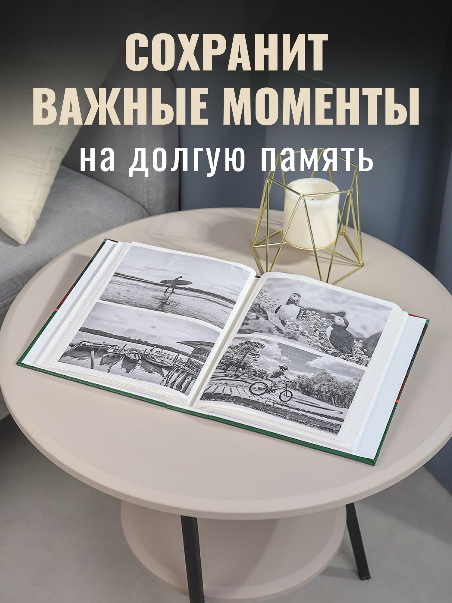 Фотоальбом с золотым тиснением "Моменты счастья" на 200 фотографий, 10х15, 50 листов с фольгированным тиснением, 17.5x22 см