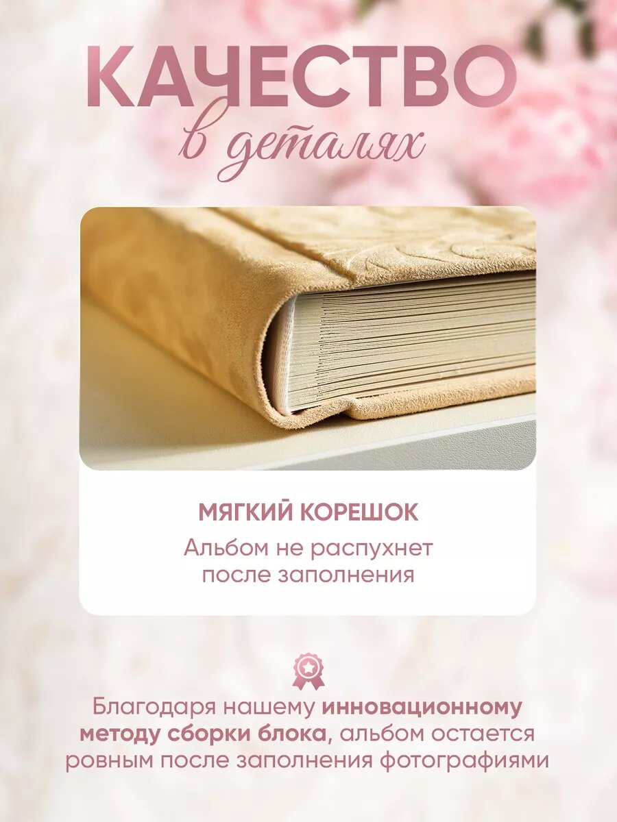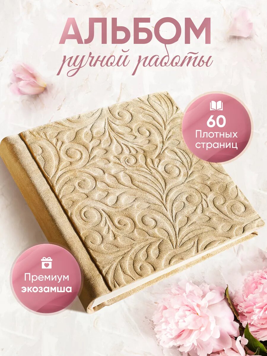 Фотоальбом семейный экозамша в подарочной упаковке, светло-золотистый, 24х24 см интересное: