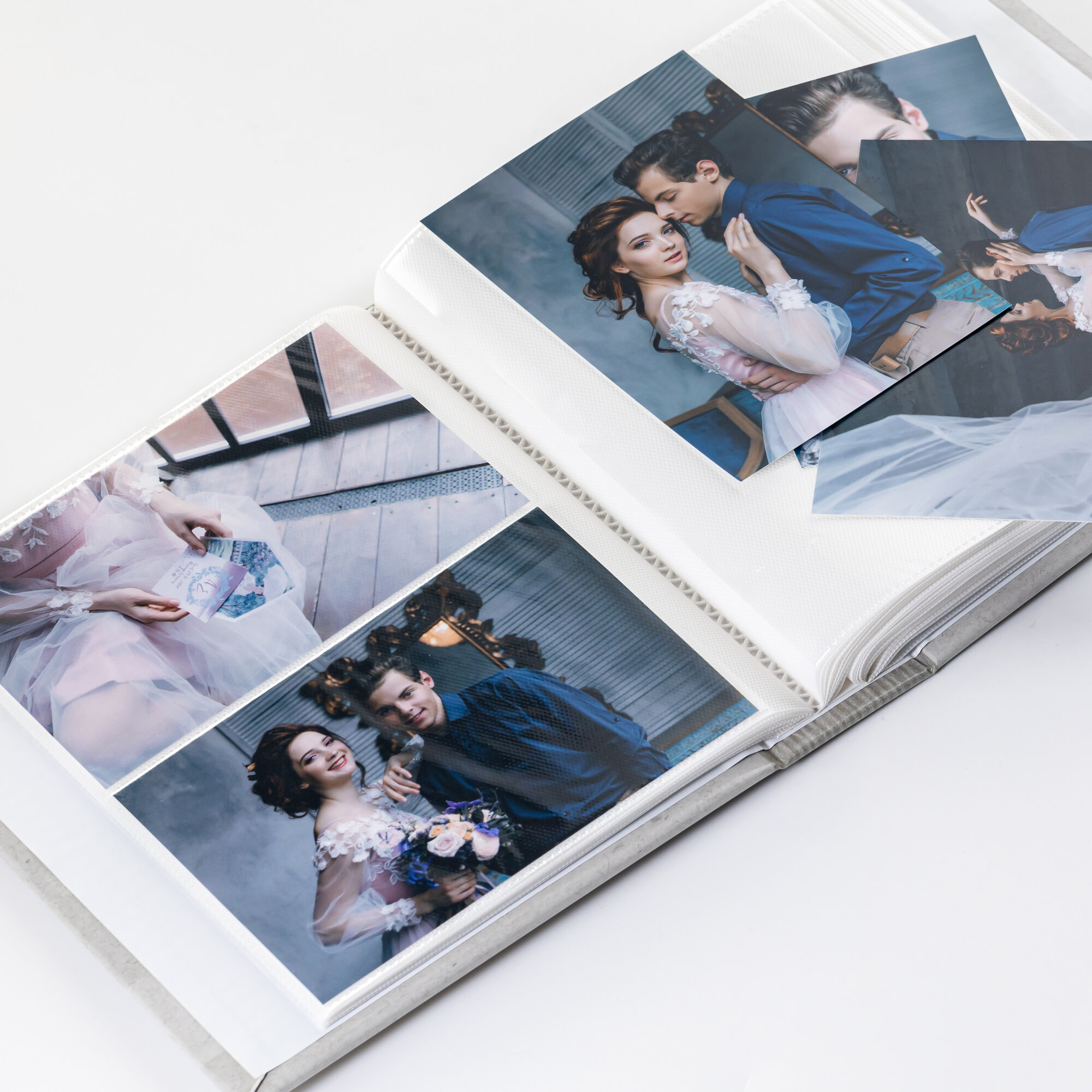 Фотоальбом из эко-кожи, двухцветный с вышивкой, 200 фото 10х15 см в кармашках