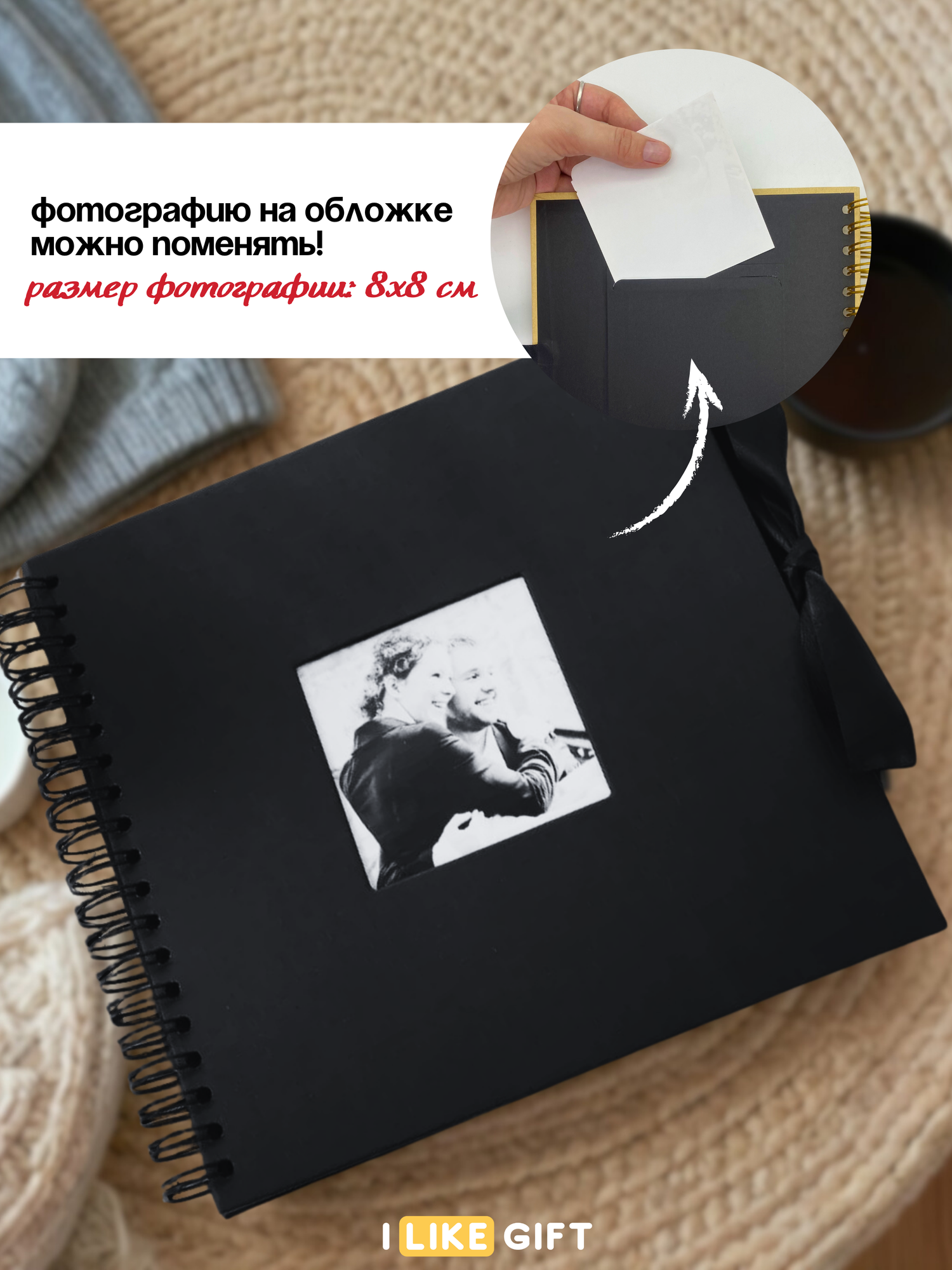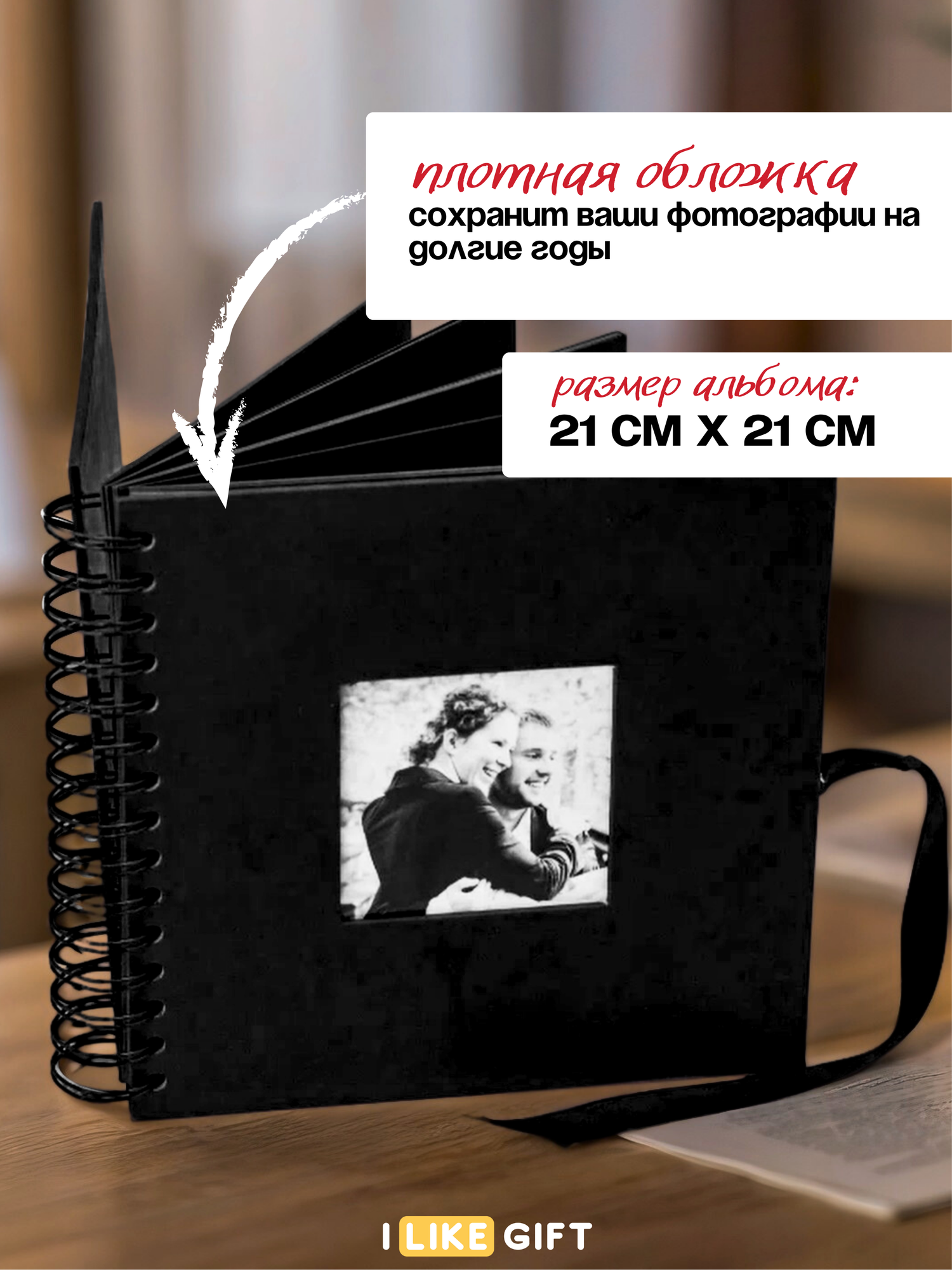 Фотоальбом семейный для фотографий 10х15, 40 черных листов, 21х21 см интересное: