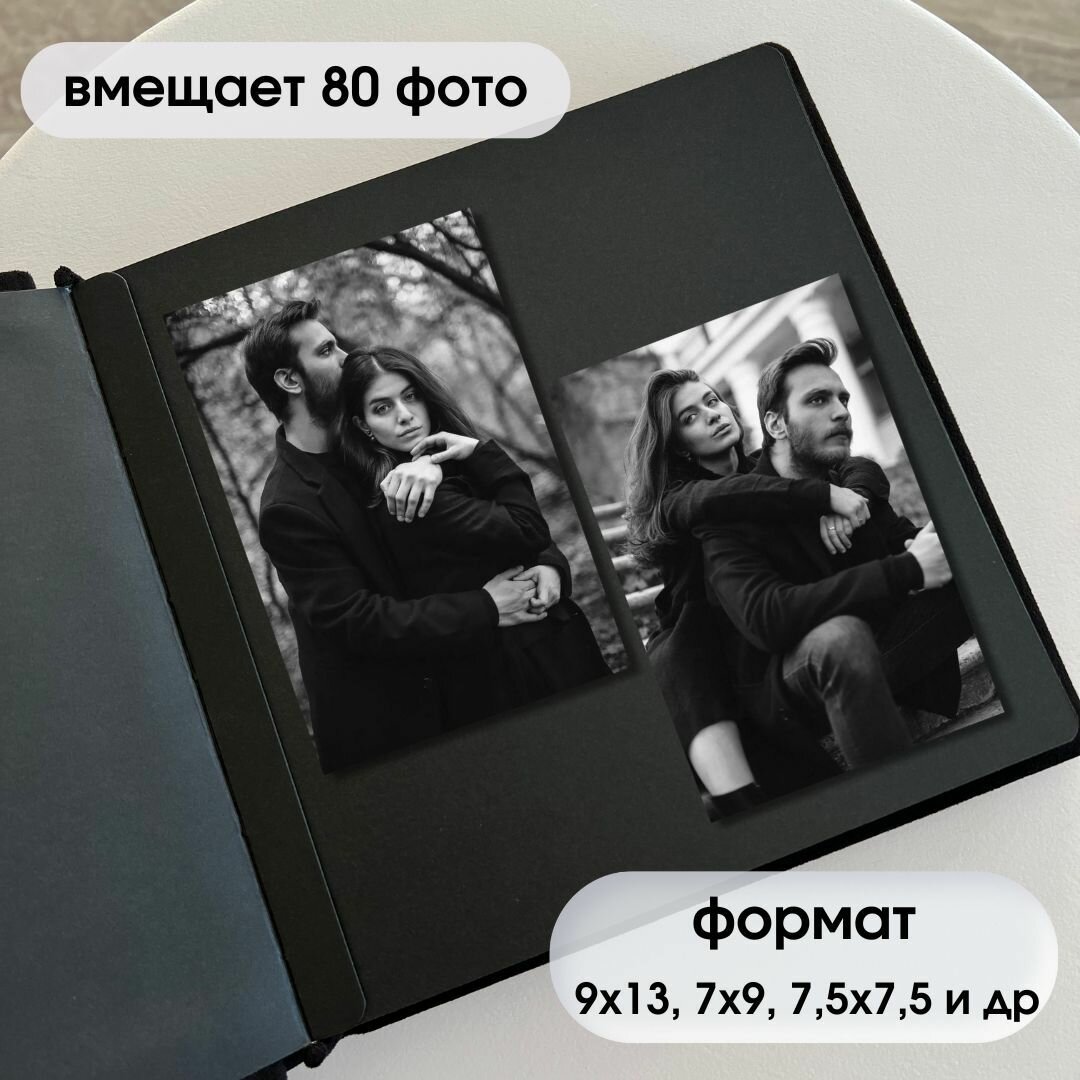 Фотоальбом Savenok-art-Shop "FAMILY", экозамша, черный с черными страницами, 40-240 фото