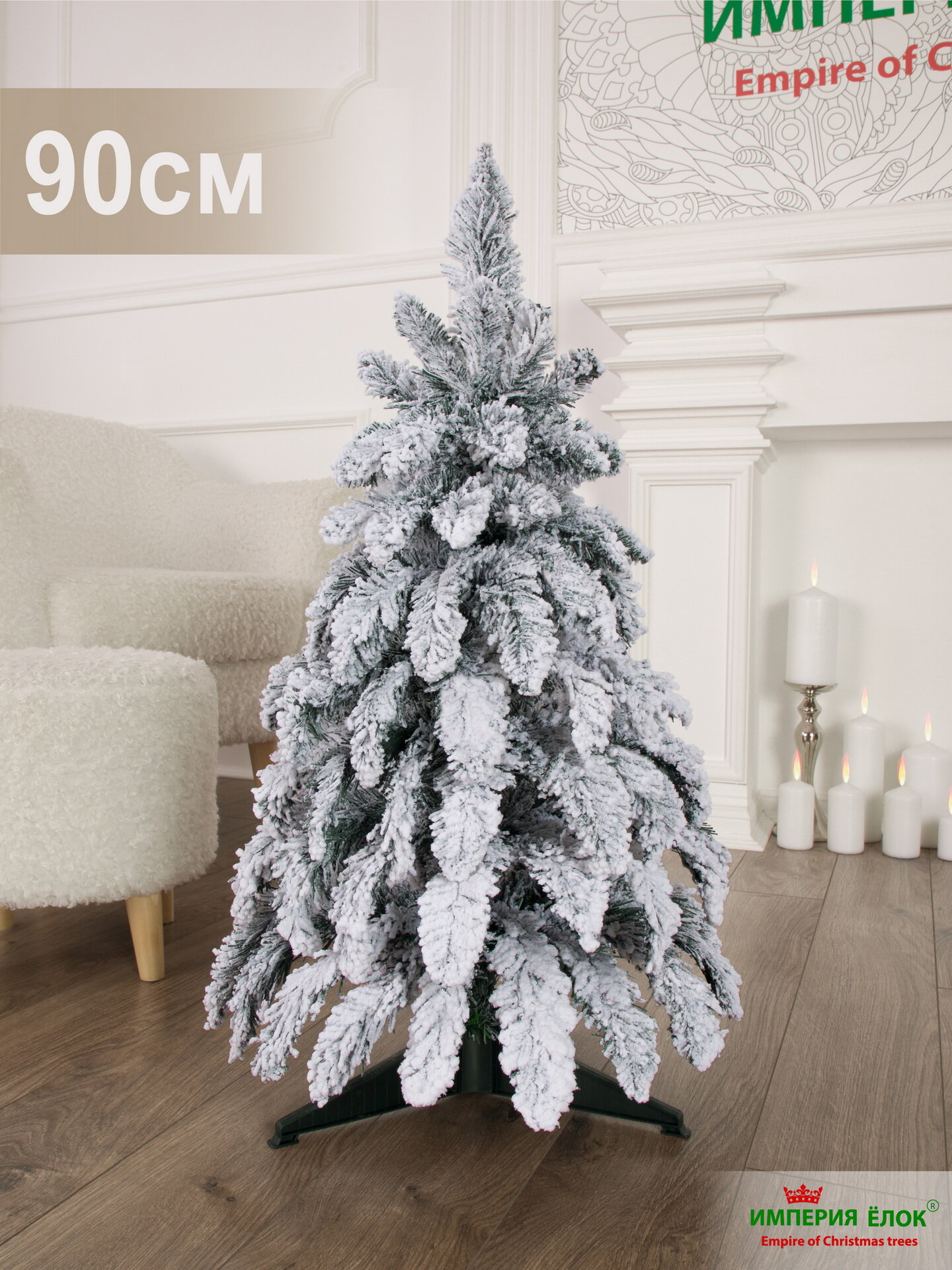 Купить Елка искусственная новогодняя заснеженная напольная 90см, ель для помещений, Империя Ёлок