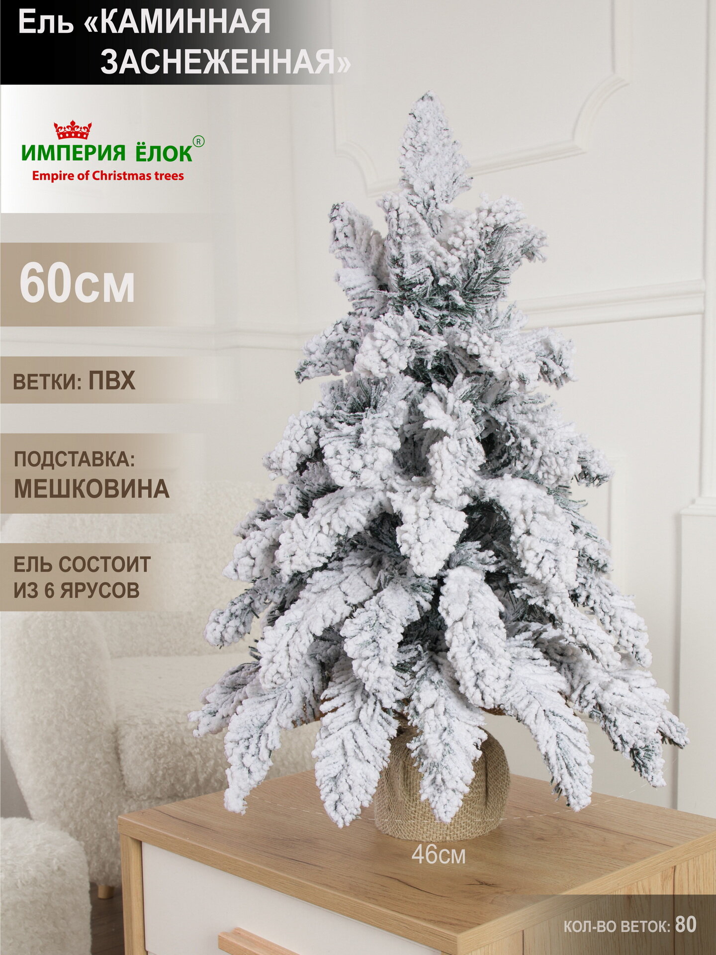 Купить Елка искусственная новогодняя заснеженная настольная 60см, ель для помещений, Империя Ёлок
