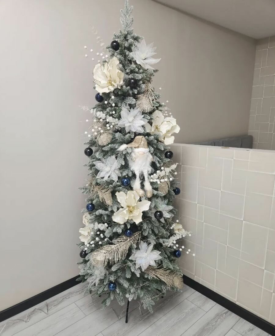 Елка искусственная настольная, узкая модель Андорра в снегу, литая хвоя, 150 см интересное: