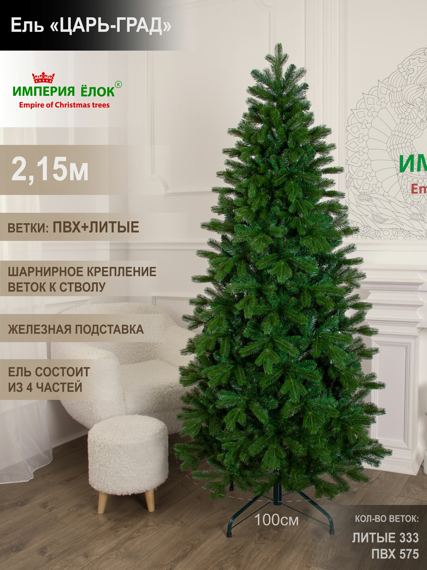 Купить Елка искусственная новогодняя литая + ПВХ высокая 215 см, ель на Рождество в комнату, Империя Ёлок