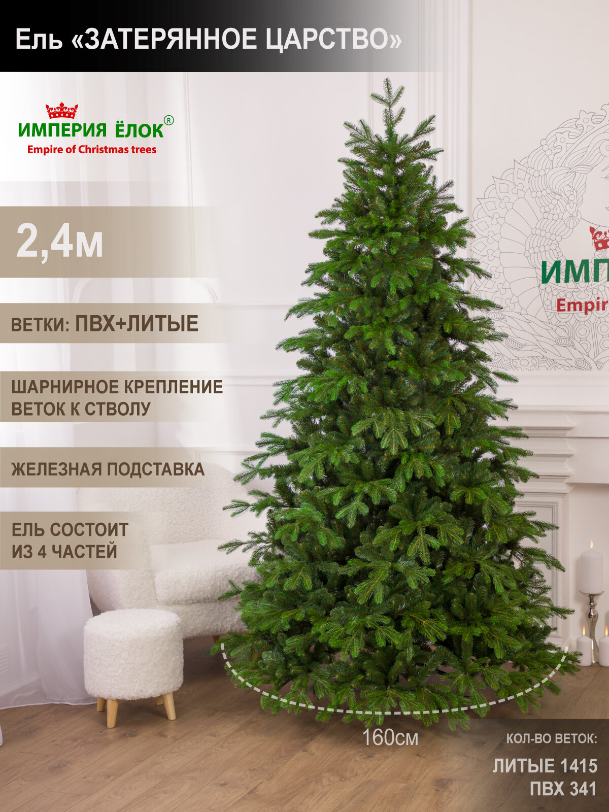 СохранитьЕлка искусственная новогодняя литая+ПВХ высокая 240 см, ель для помещений, Империя Ёлок интересное: