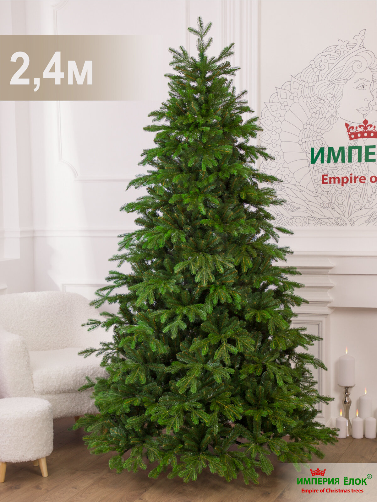 Купить Елка искусственная новогодняя литая+ПВХ высокая 240 см, ель для помещений, Империя Ёлок