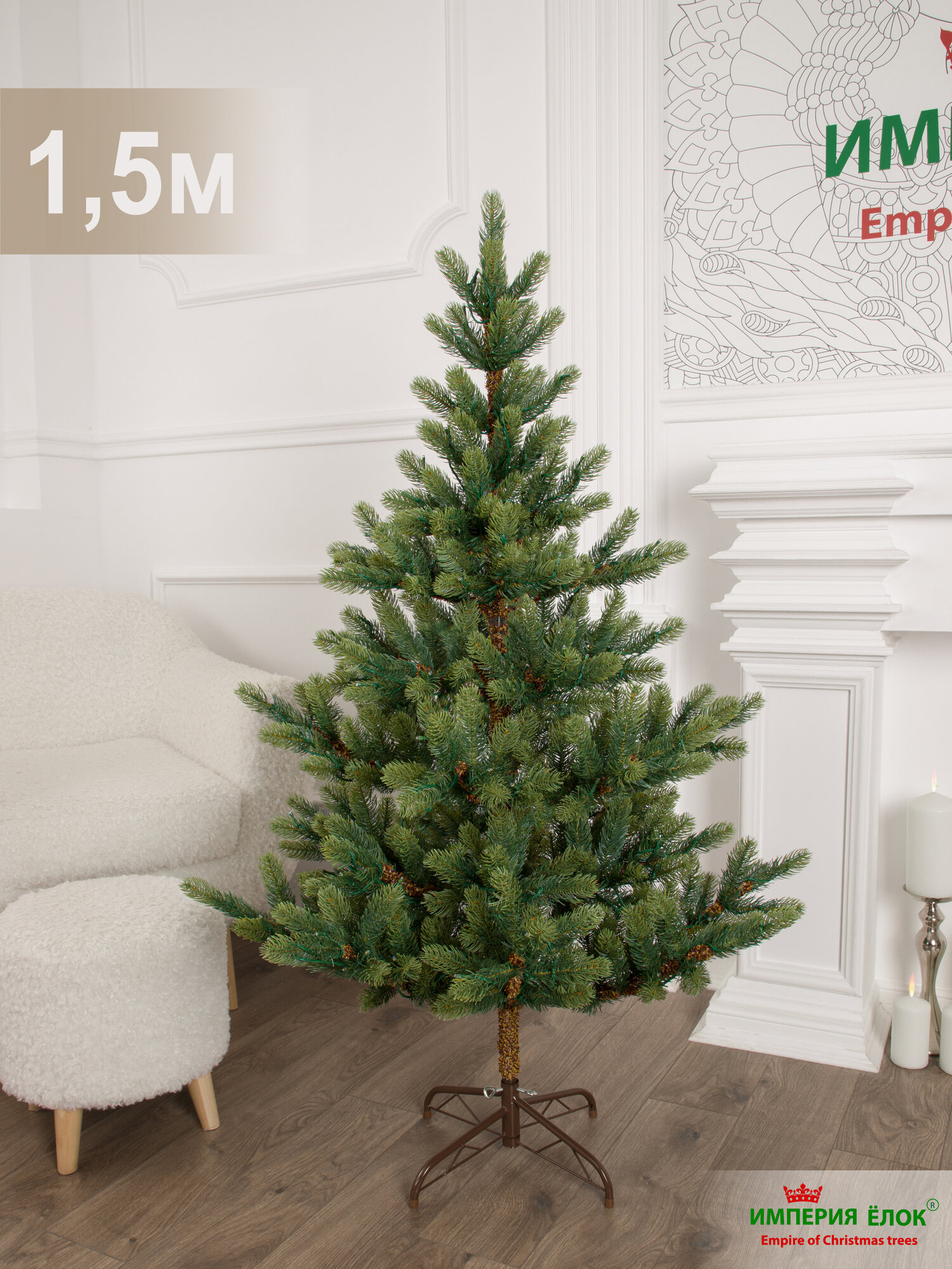 Елка искусственная новогодняя литая + ПВХ невысокая 155 см, ель на Рождество в комнату, Империя Ёлок