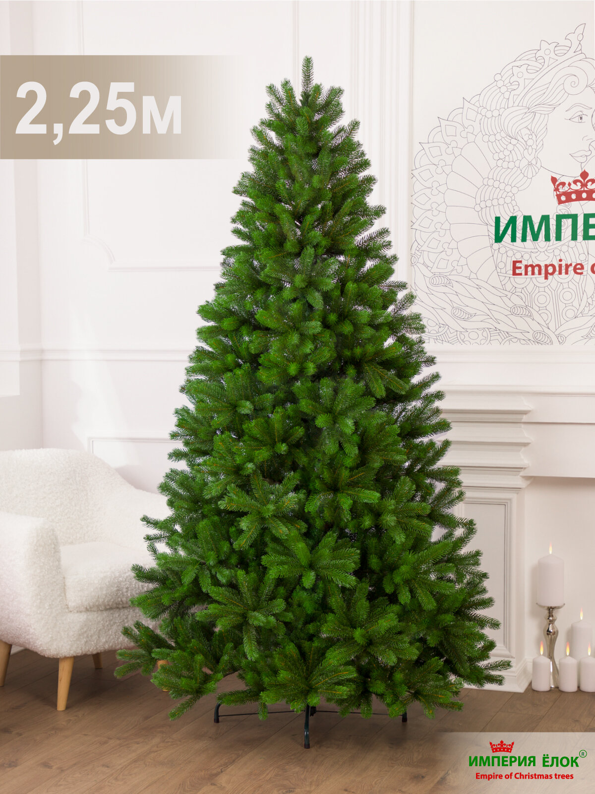 Елка искусственная новогодняя литая 225 см, ель на Рождество в комнату, Империя Ёлок интересное: