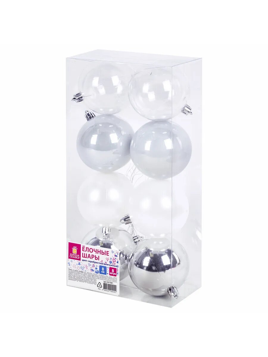 Купить 2шт Шары ёлочные 8 шт, 8 см, "Eden Colors", пластик, цвет: