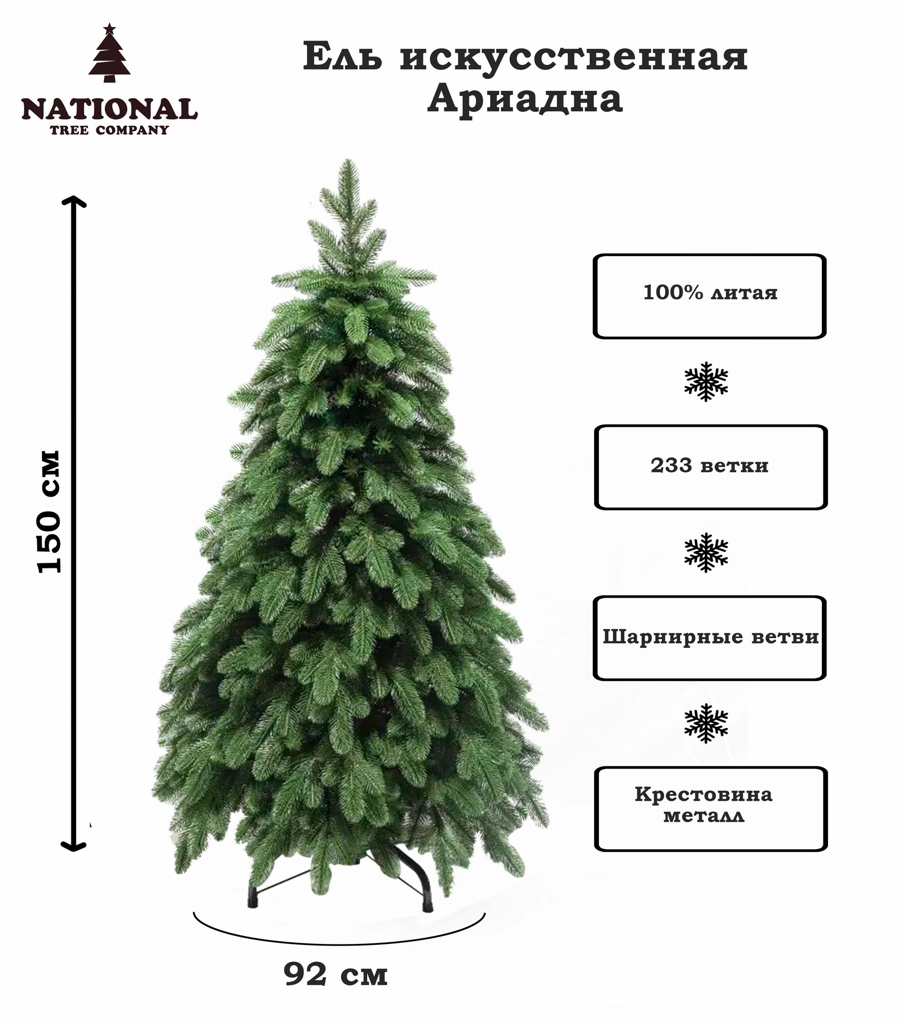 Елка искусственная новогодняя Ариадна 150 см, литая хвоя, премиум ель, зеленая, пушистая интересное: