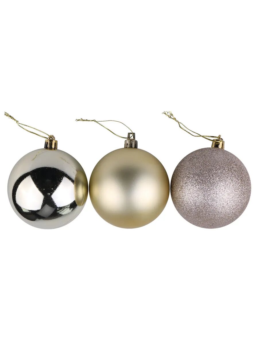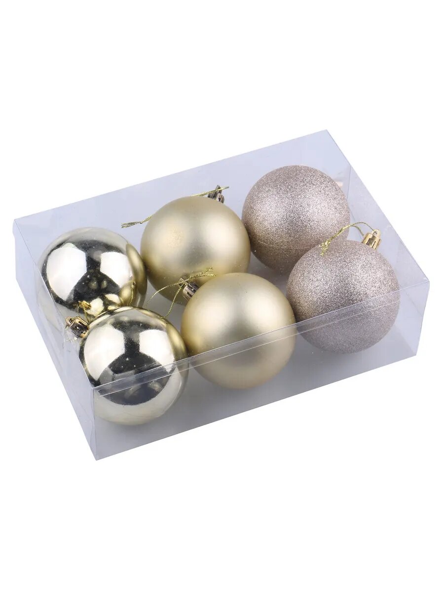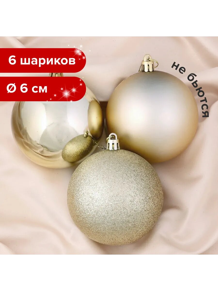 Купить Шары ёлочные 6 шт, 6 см, "Trio", пластик, светлое золото (