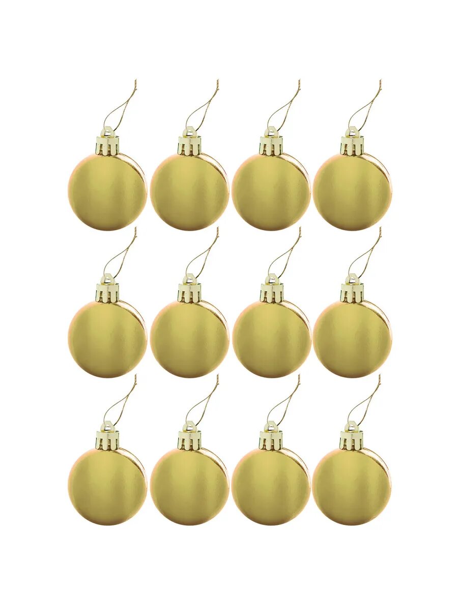 Купить Шары ёлочные 12 шт, 4 см, "Solid Color", пластик, золотист
