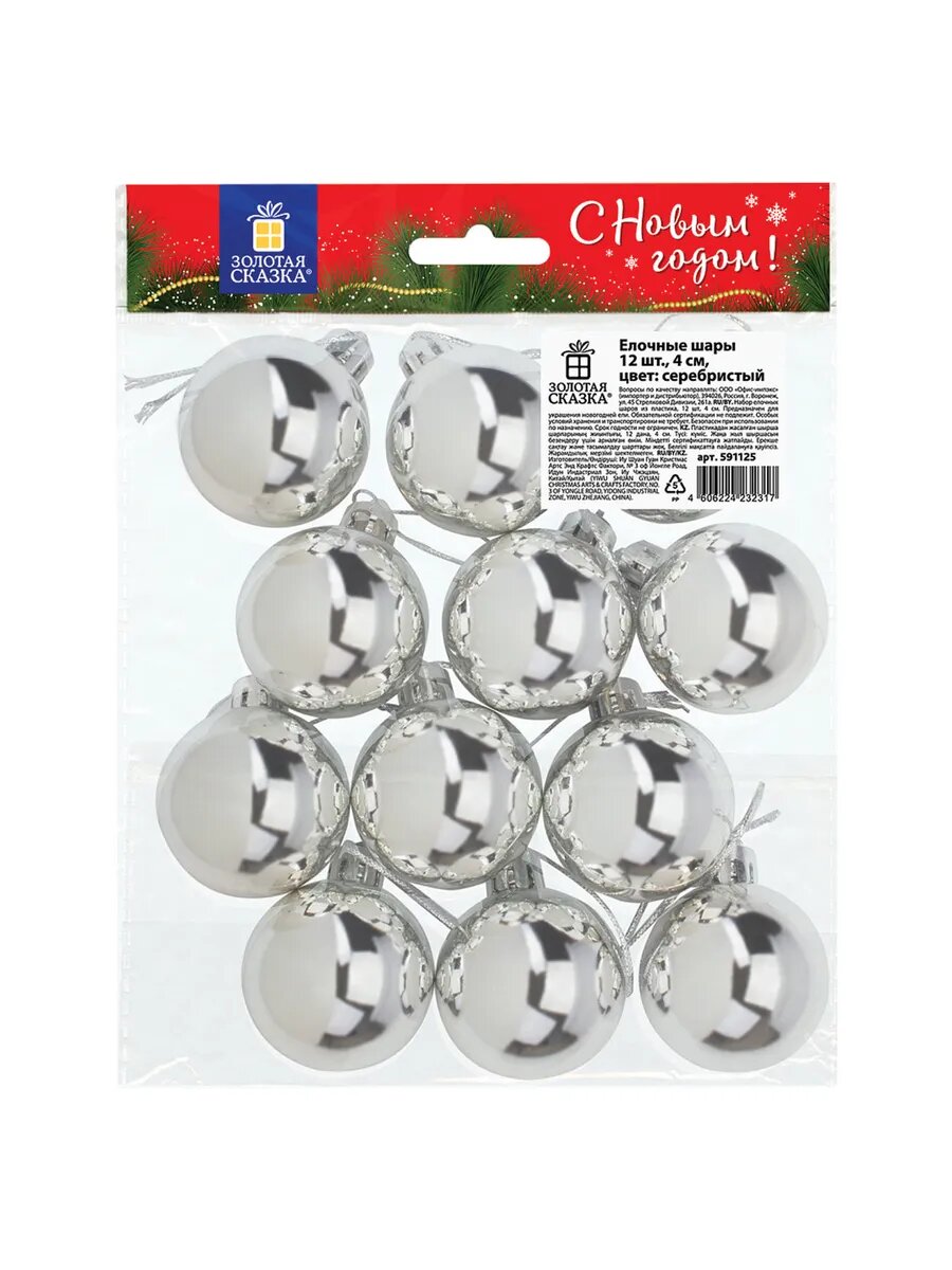 Шары ёлочные 12 шт, 4 см, "Solid Color", пластик, серебрис интересное: