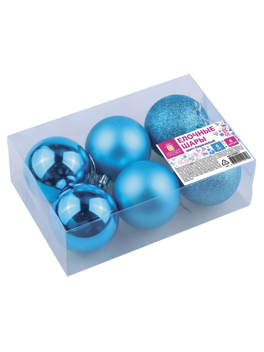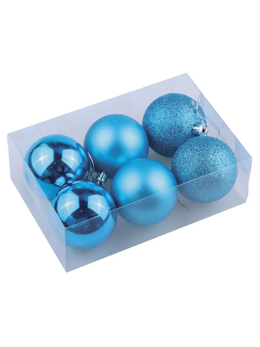 Купить Шары ёлочные 6 шт, 6 см, "Trio", пластик, бирюзовые (гляне