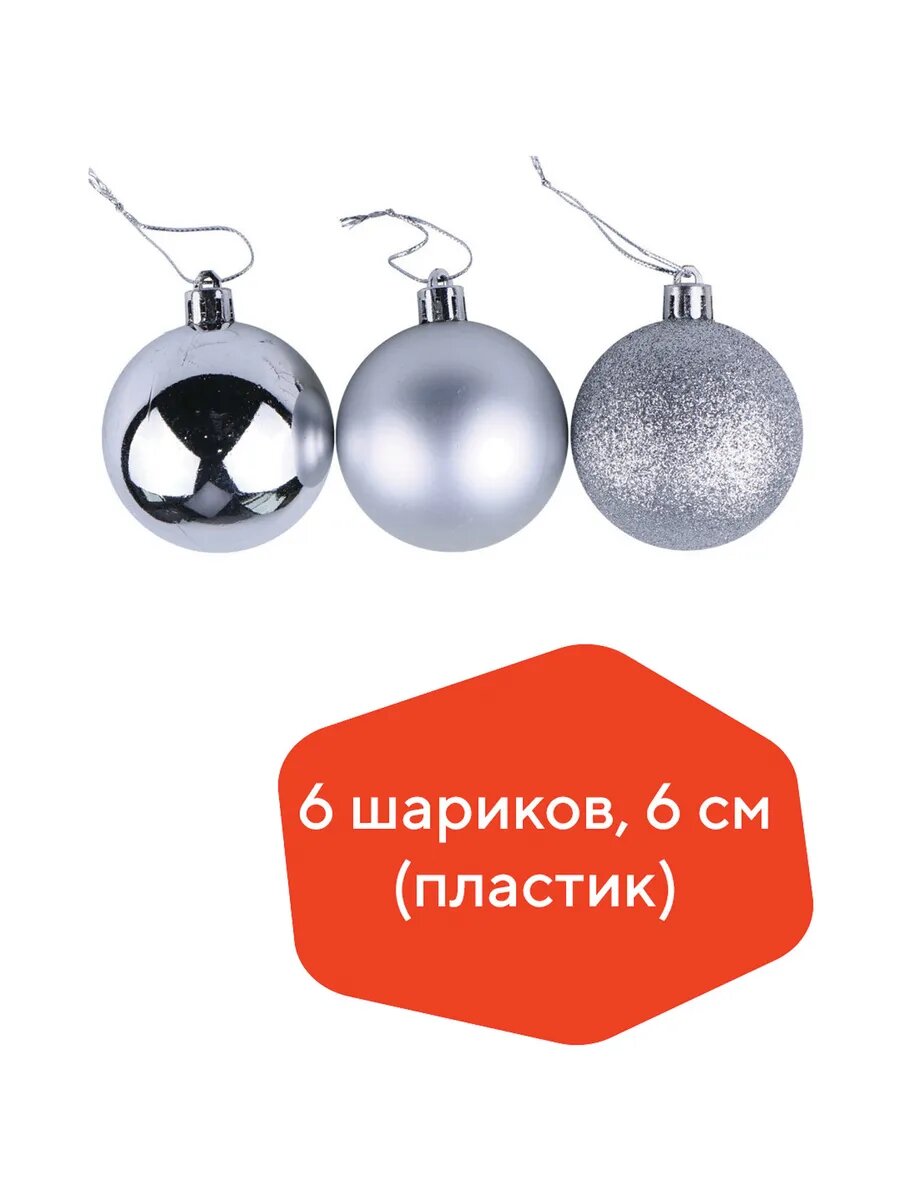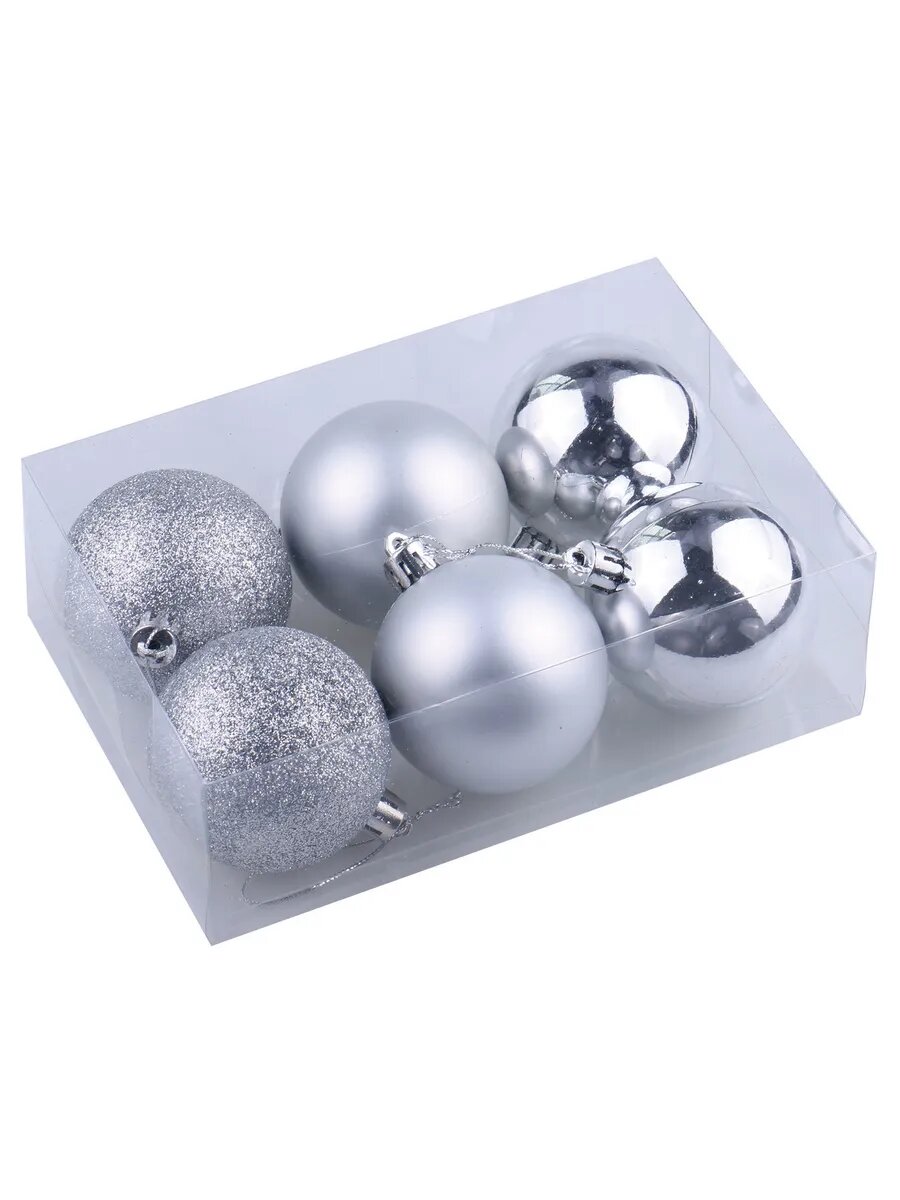 Купить Шары ёлочные 6 шт, 6 см, "Trio", пластик, серебристые (гля