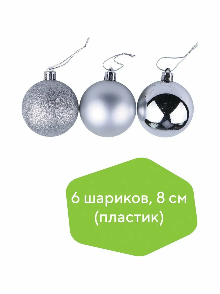 Шары ёлочные 6 шт, 8 см, "Trio", пластик, серебристые (гля интересное: