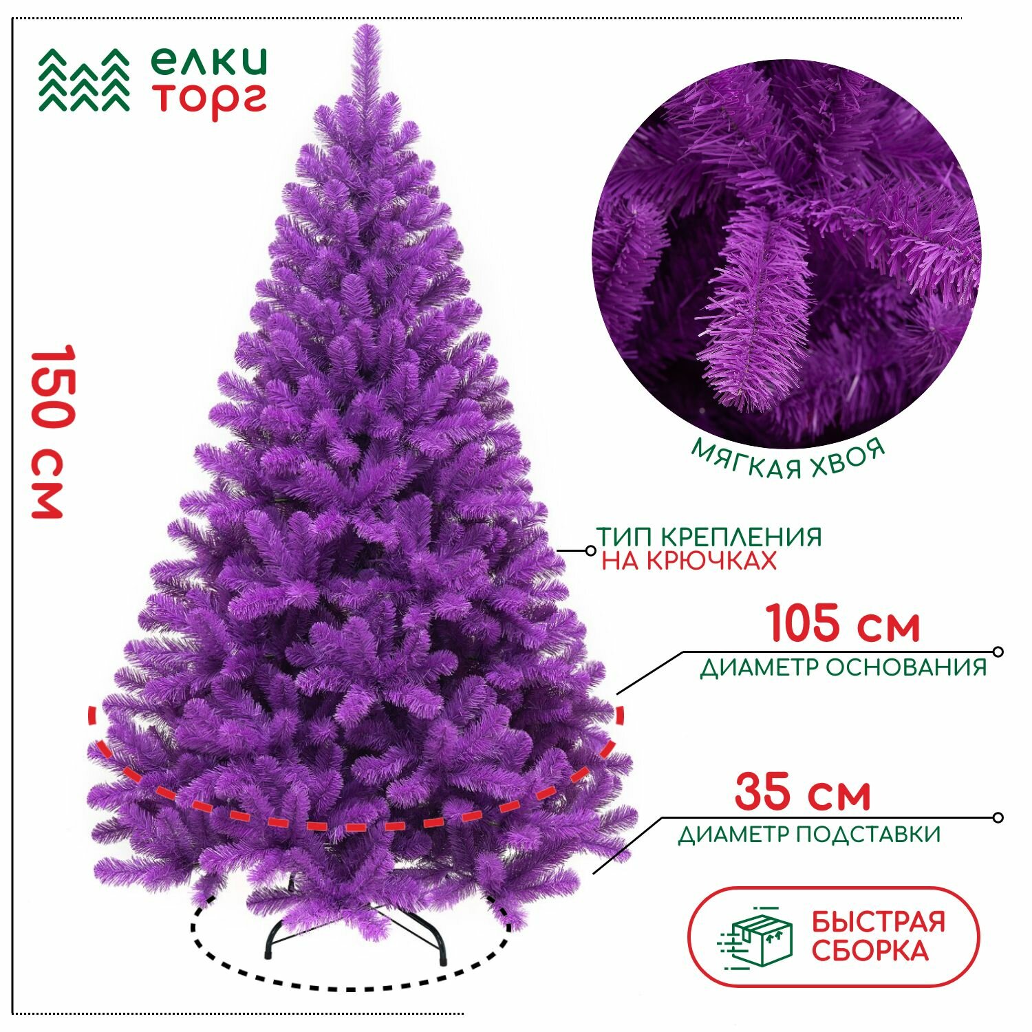 Новогодняя искусственная елка Прованс 150 см, мягкая хвоя, (118150) интересное: