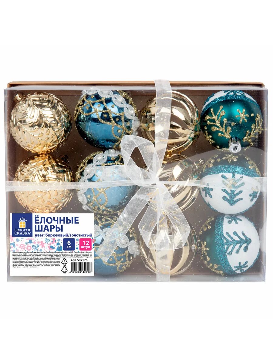 Купить Шары ёлочные 12 шт, 6 см, "Frost Forest", пластик, бирюзов