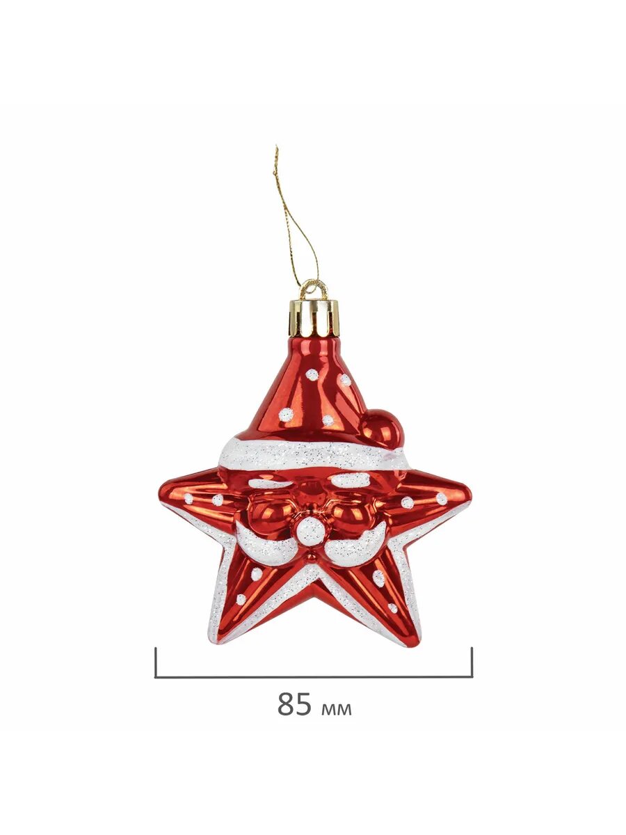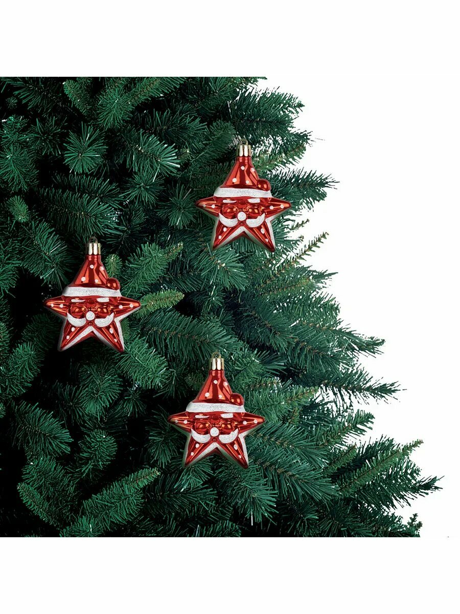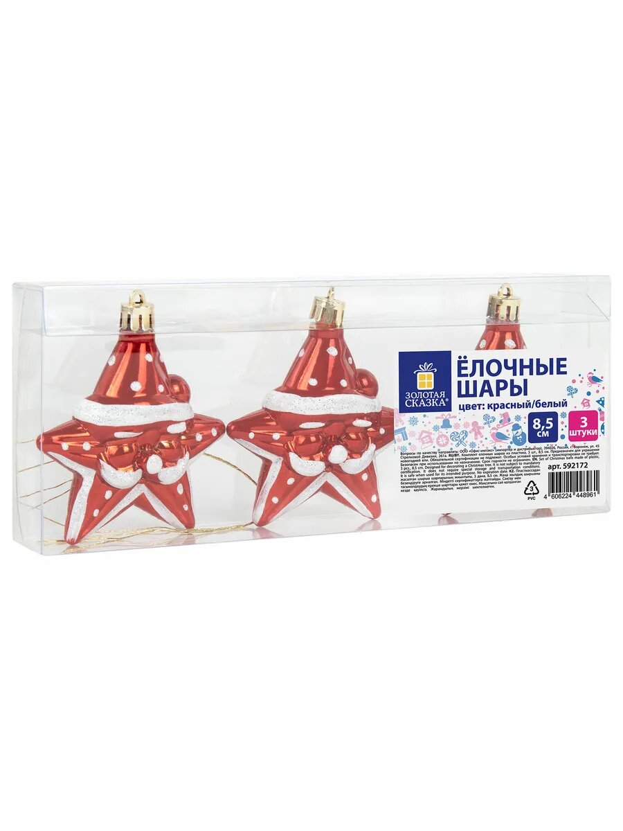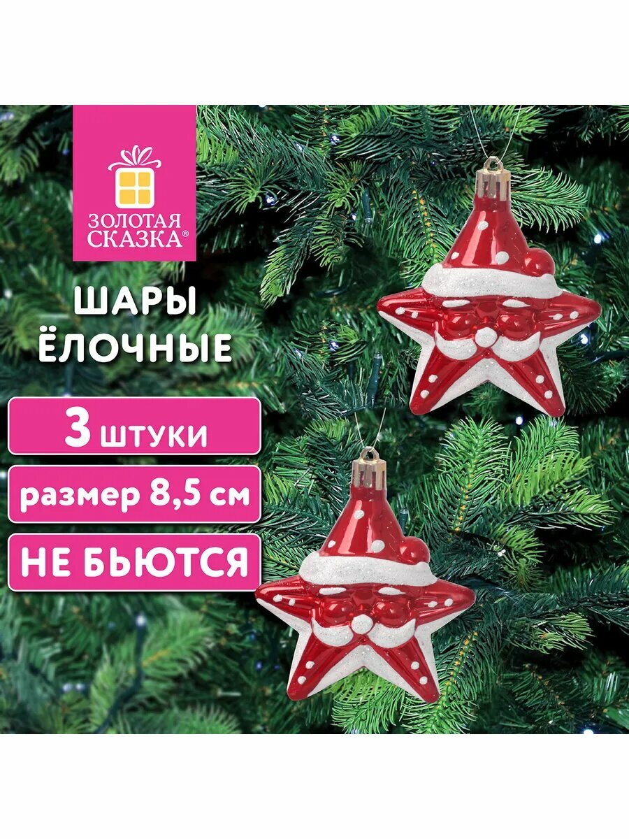 Купить 4шт Шары ёлочные 3шт, 8,5см "Звезды с усами", красный/белый