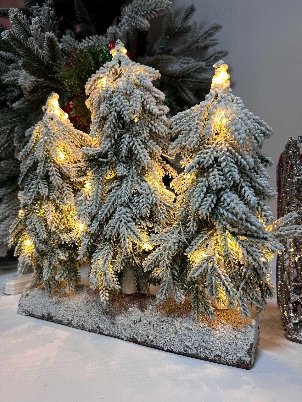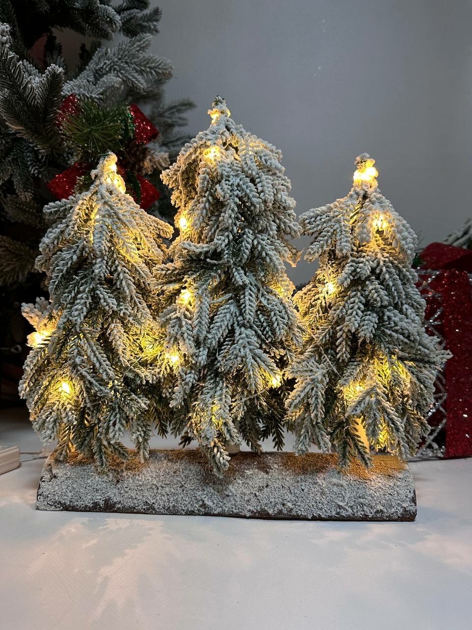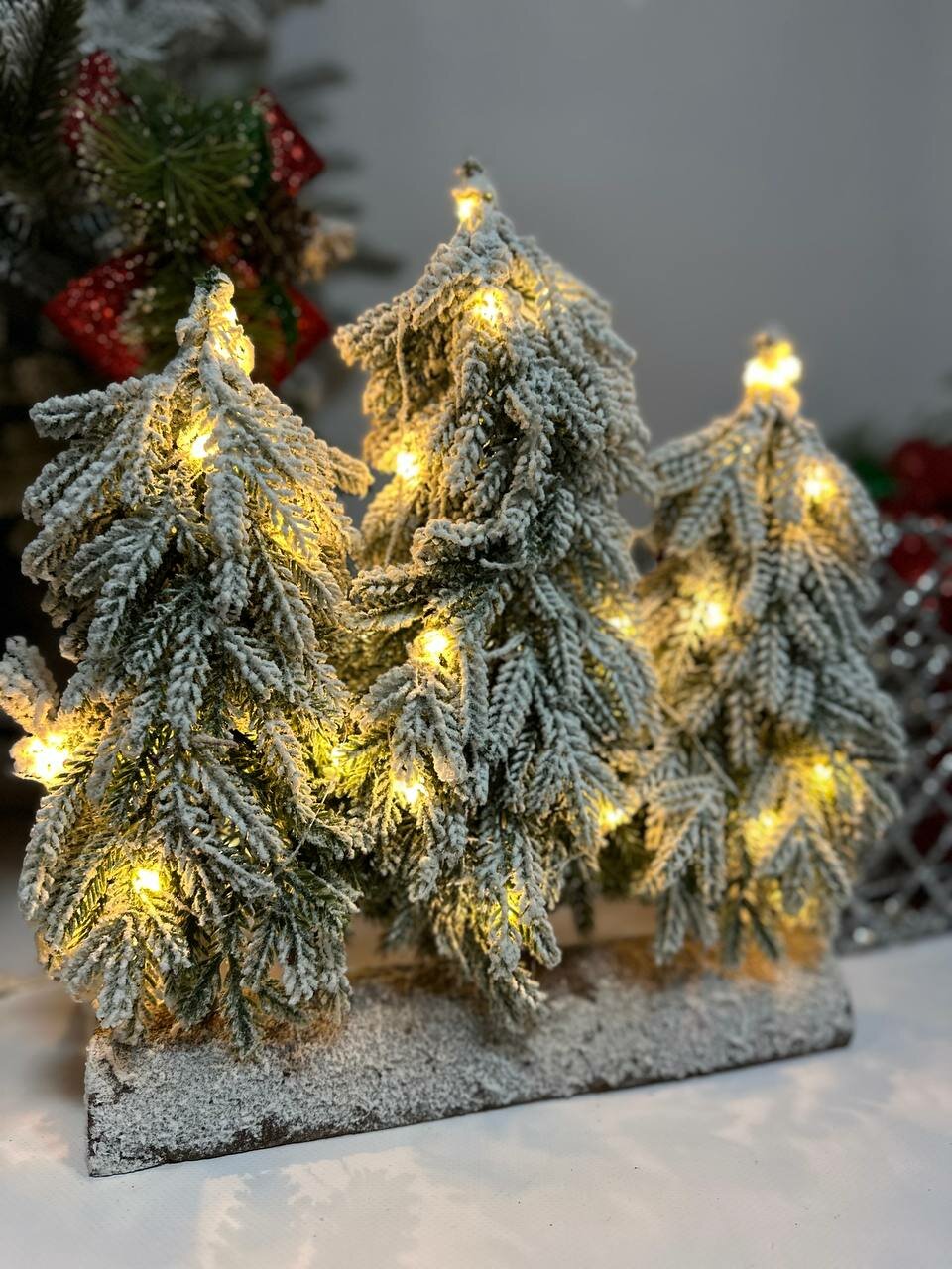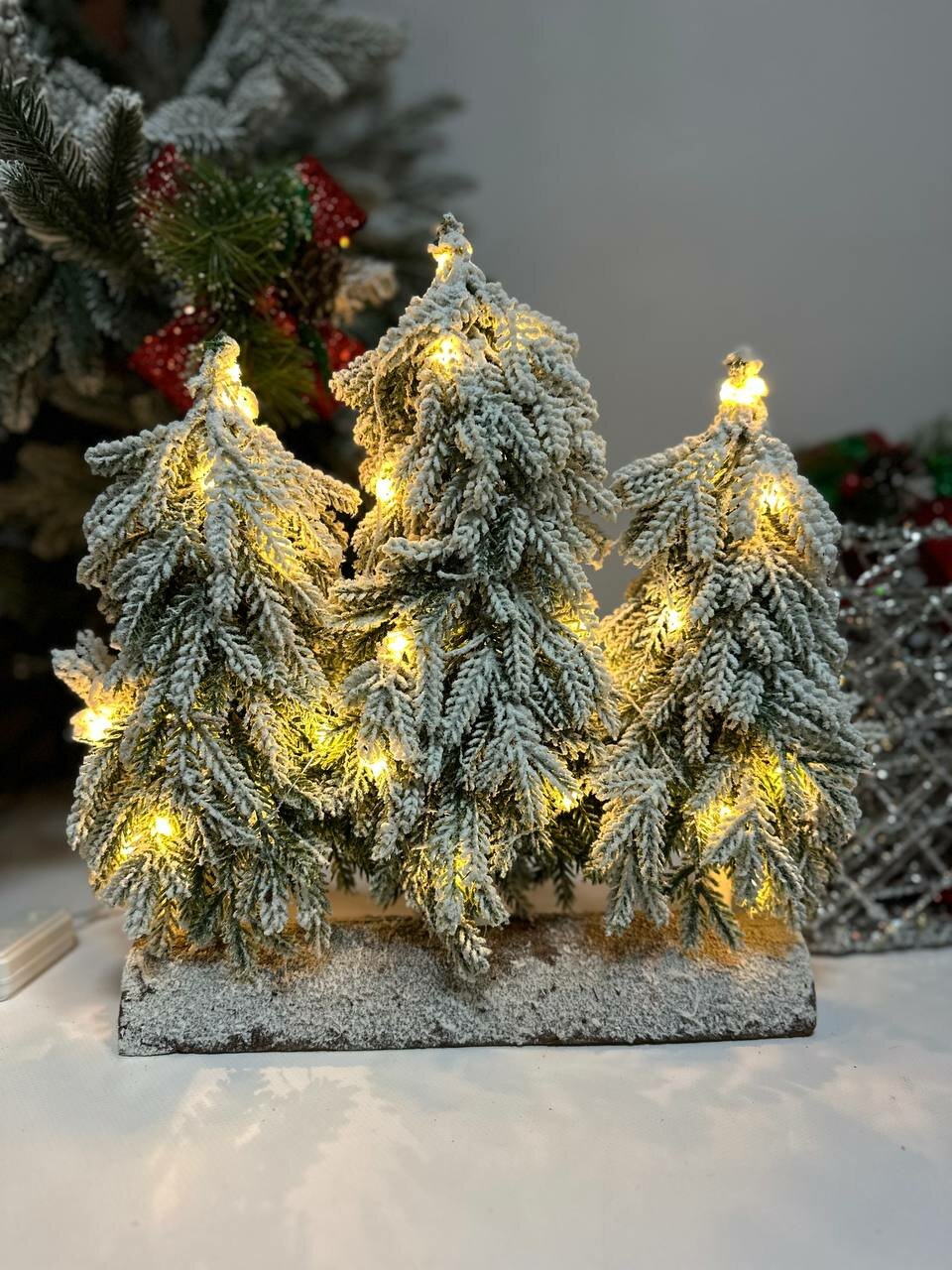 Купить Композиция из трёх ёлок искусственных заснеженных, с тёплым белым свечением, 8 режимов, 2024