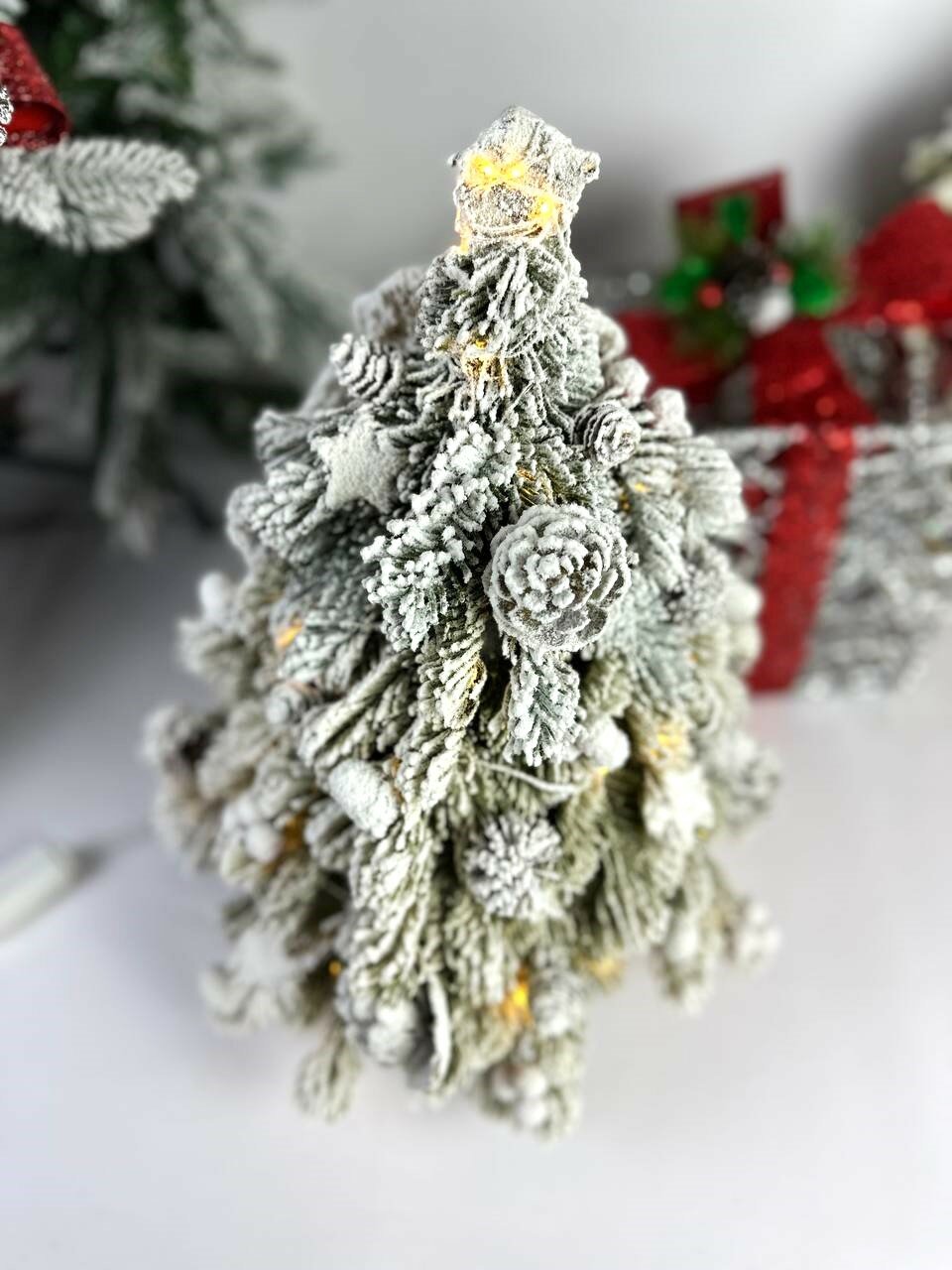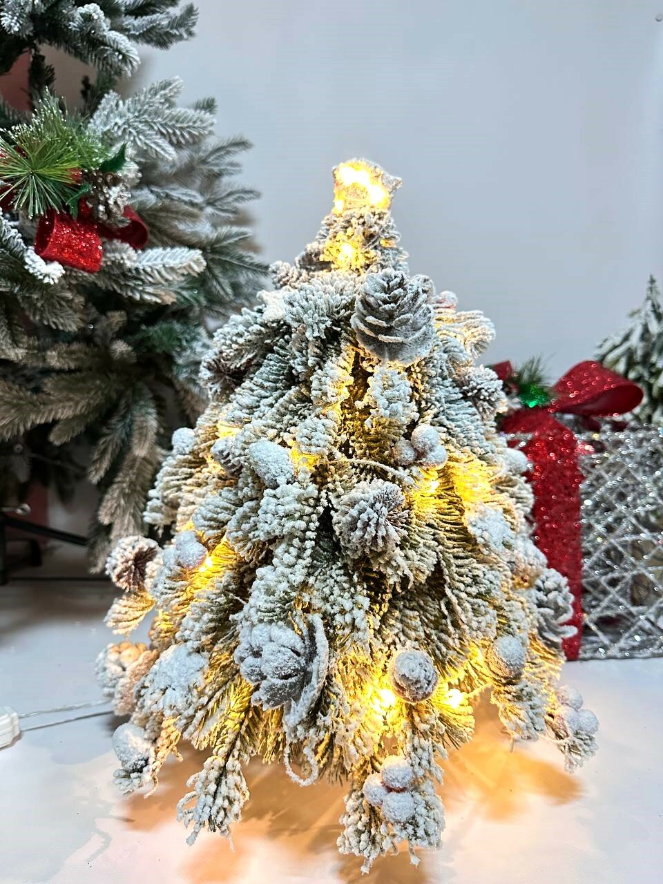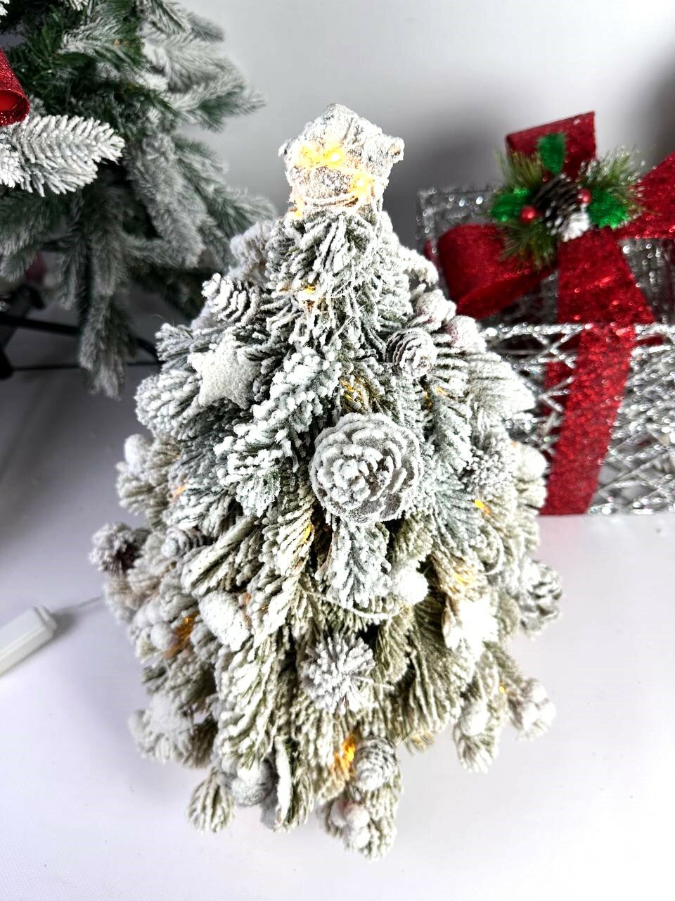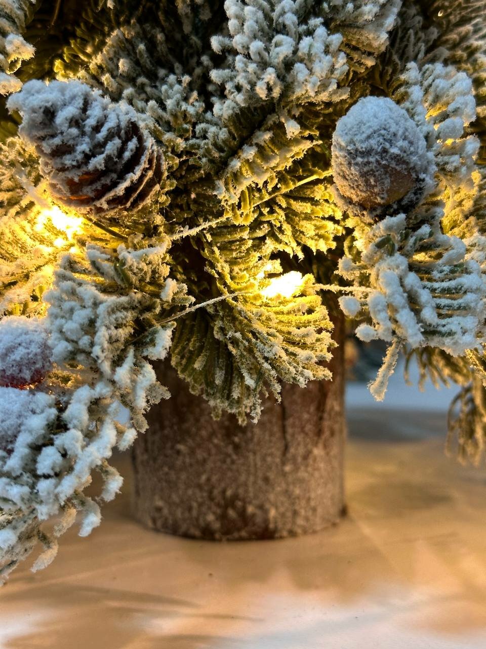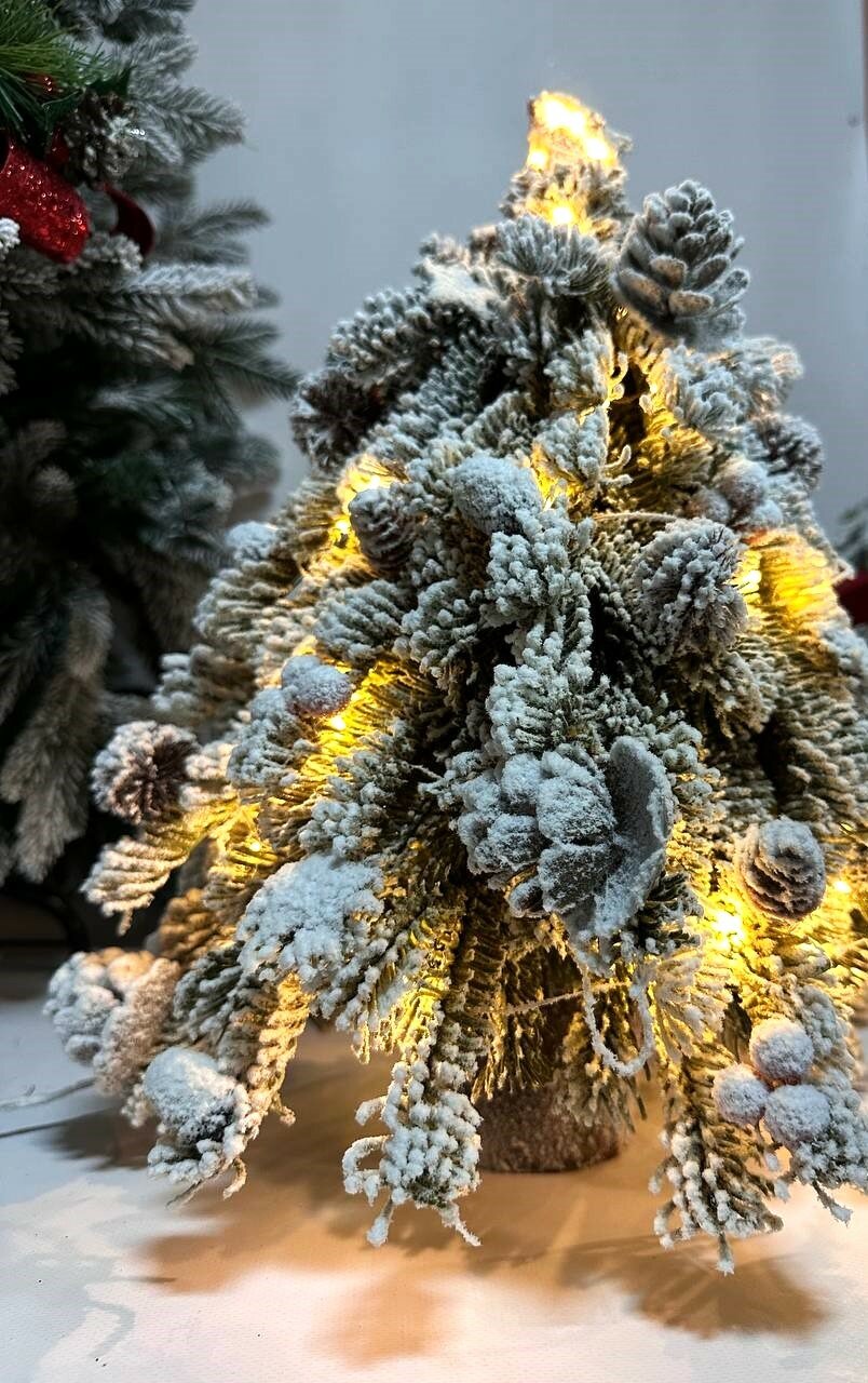 Купить Ёлка искусственная заснеженная, с шишками и ягодами, с тёплым белым свечением, 8 режимов, 45 см