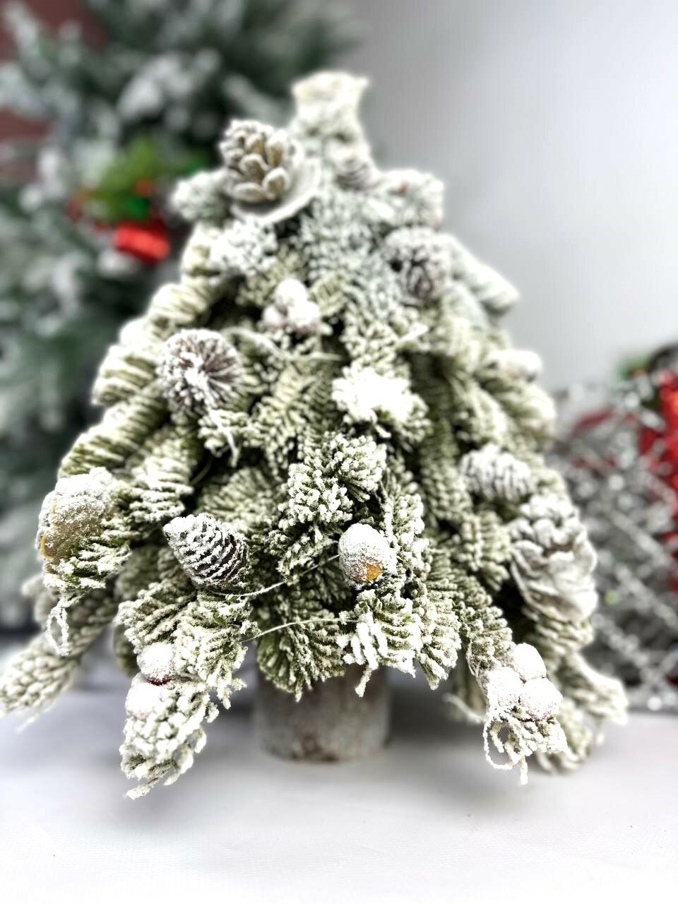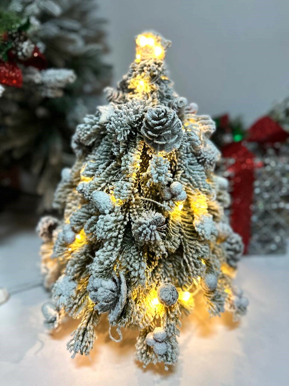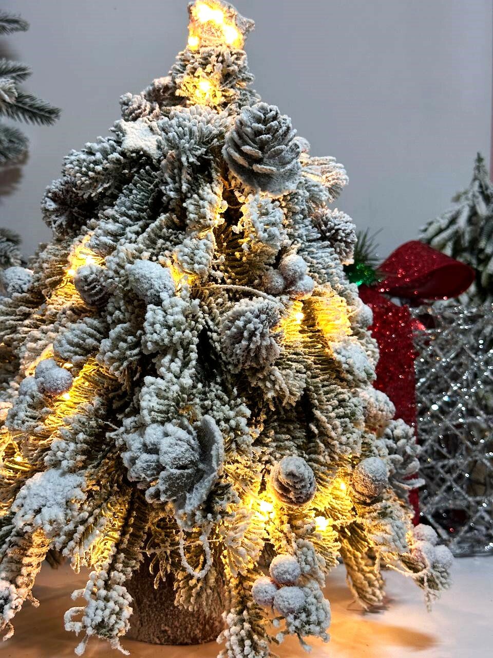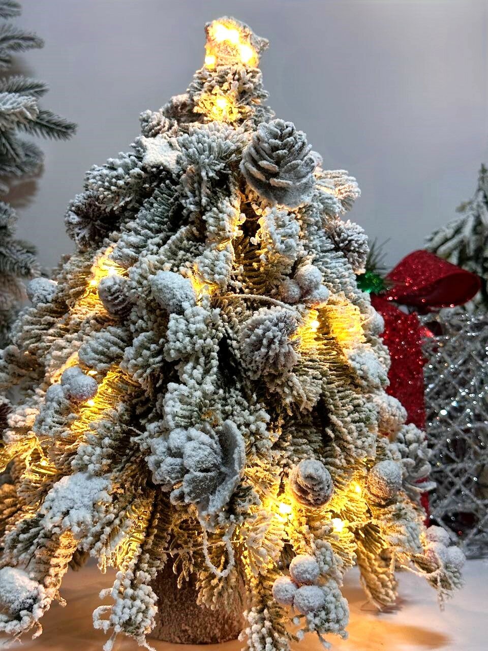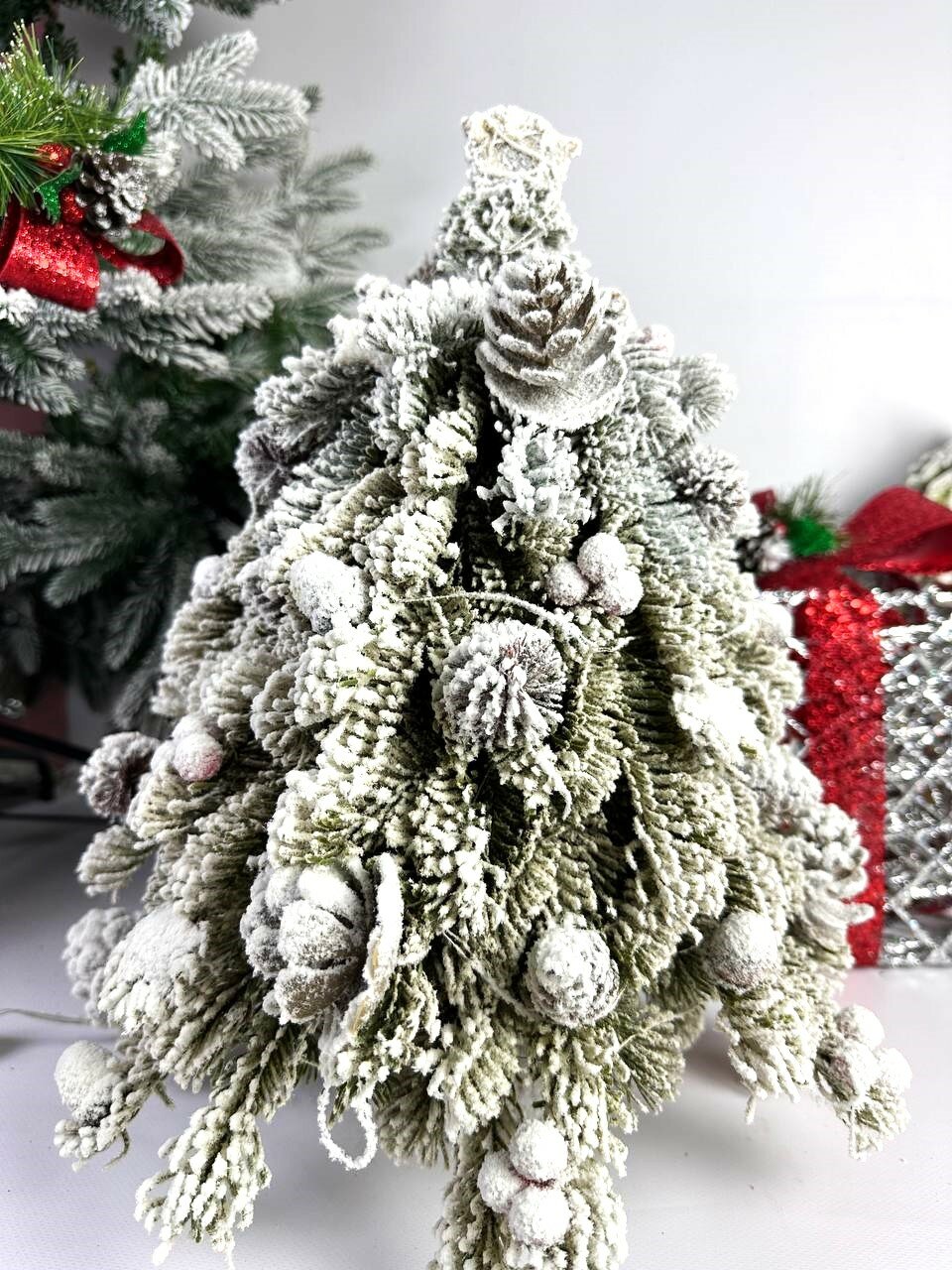 Купить Ёлка искусственная заснеженная, с шишками и ягодами, с тёплым белым свечением, 8 режимов, 45 см