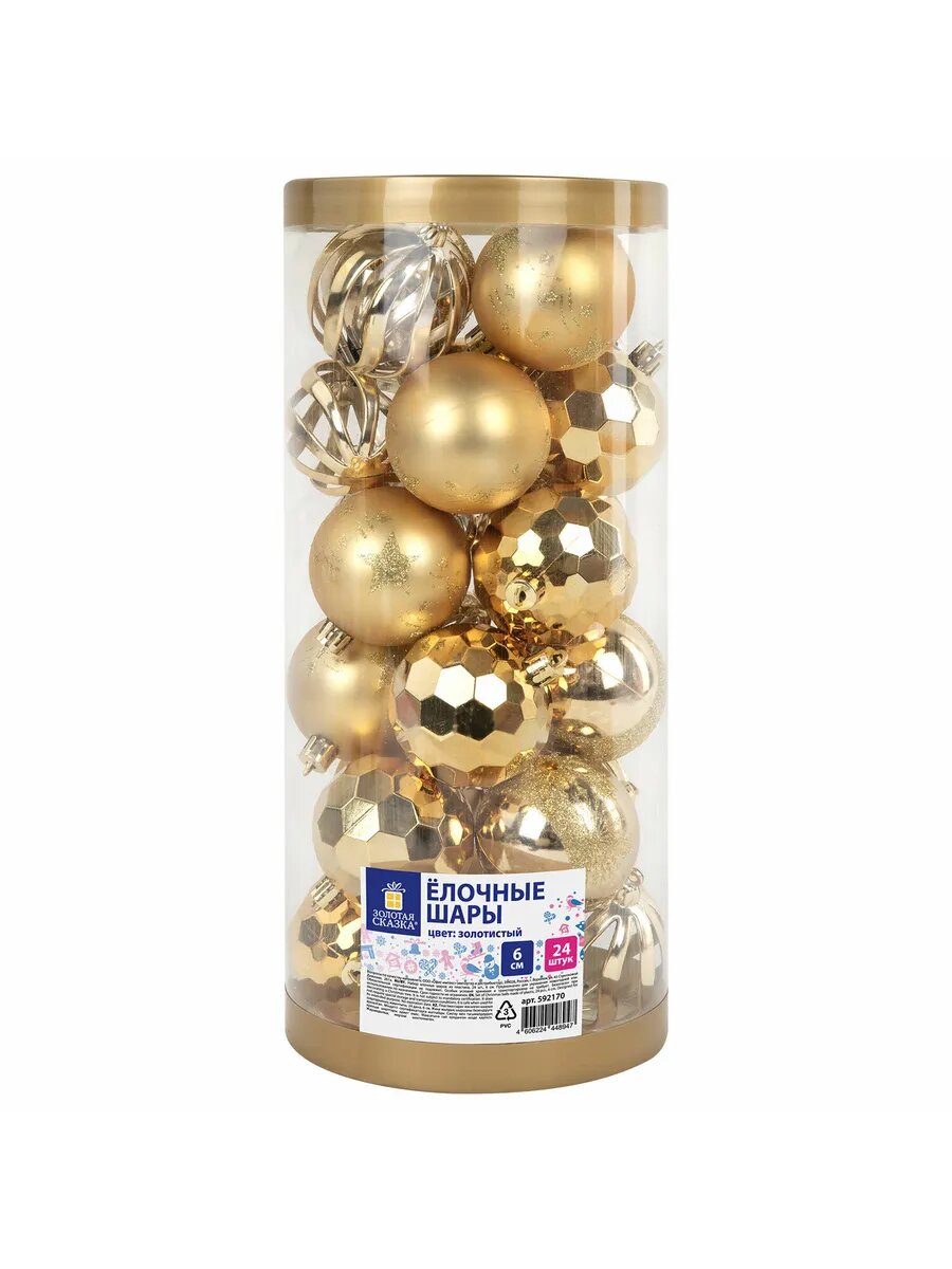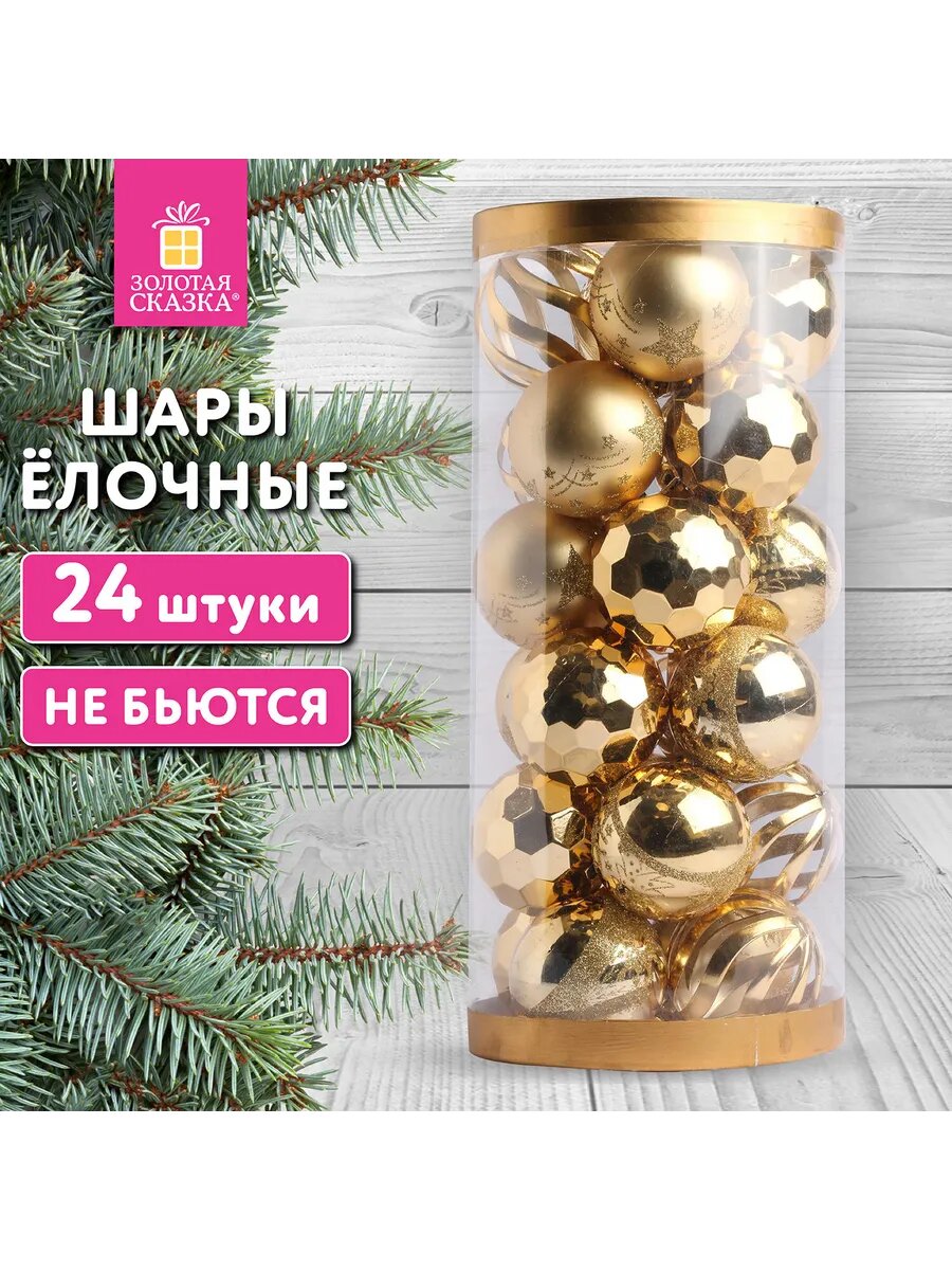 Шары ёлочные 24 шт, 6 см, "Fine Gold", пластик, золотистые интересное: