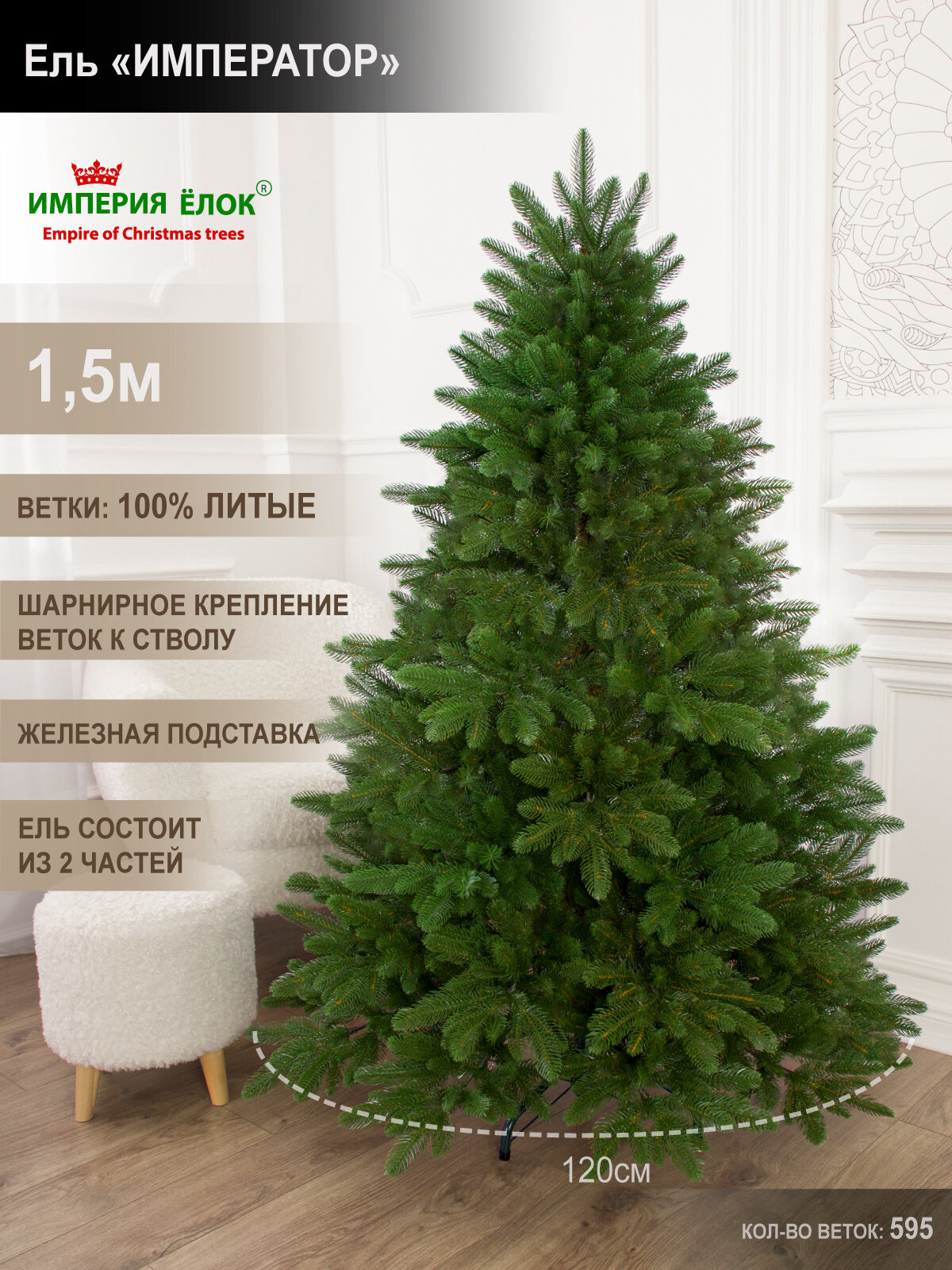 Елка искусственная новогодняя литая небольшая 150 см, ель на Рождество в комнату, Империя Ёлок интересное: