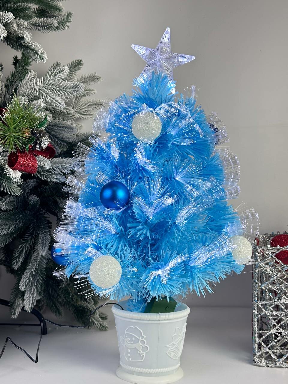 Ёлка светодиодная, оптоволоконная голубая, 60 см, в ведёрке, от сети 220 В интересное: