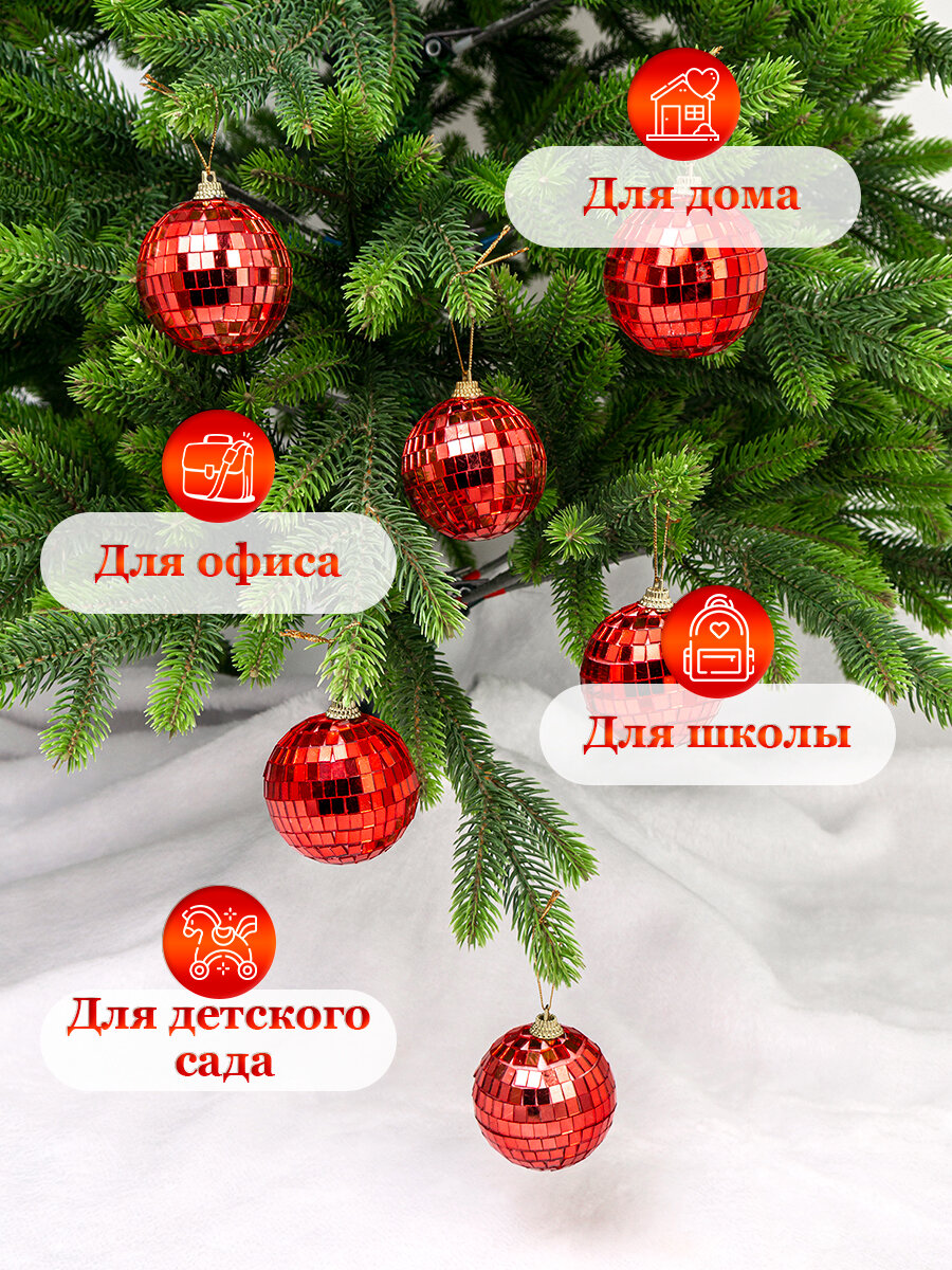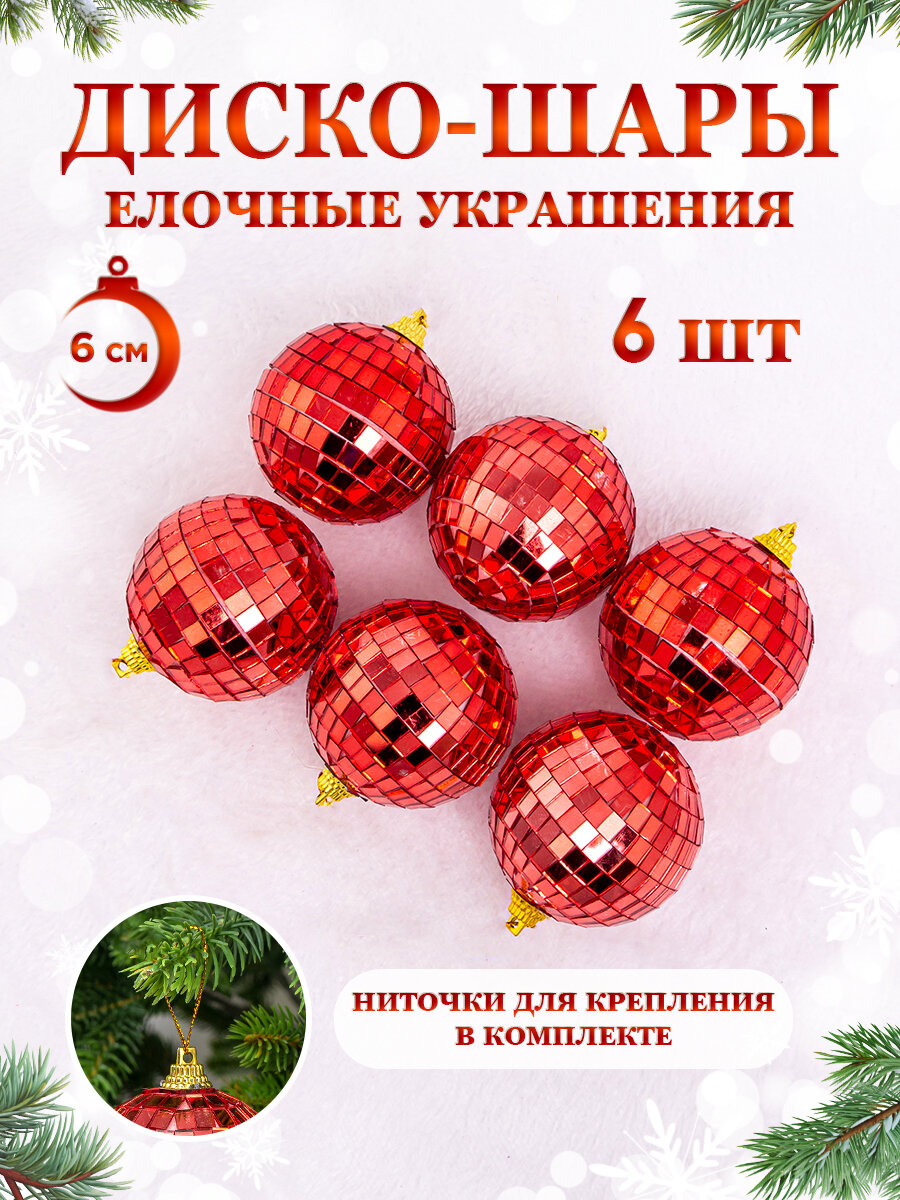 Елочные игрушки диско шары, набор 6 штук, размер 6 см, цвет красный интересное: