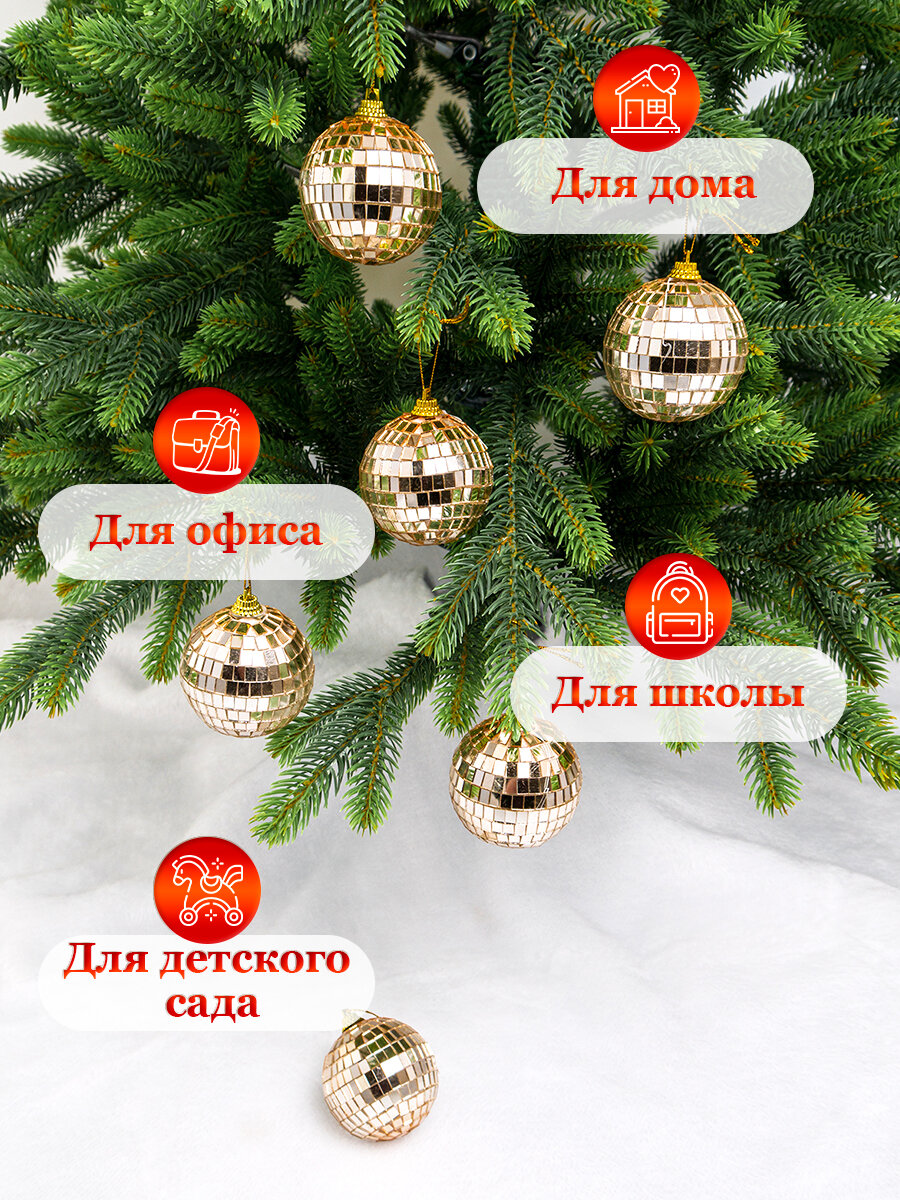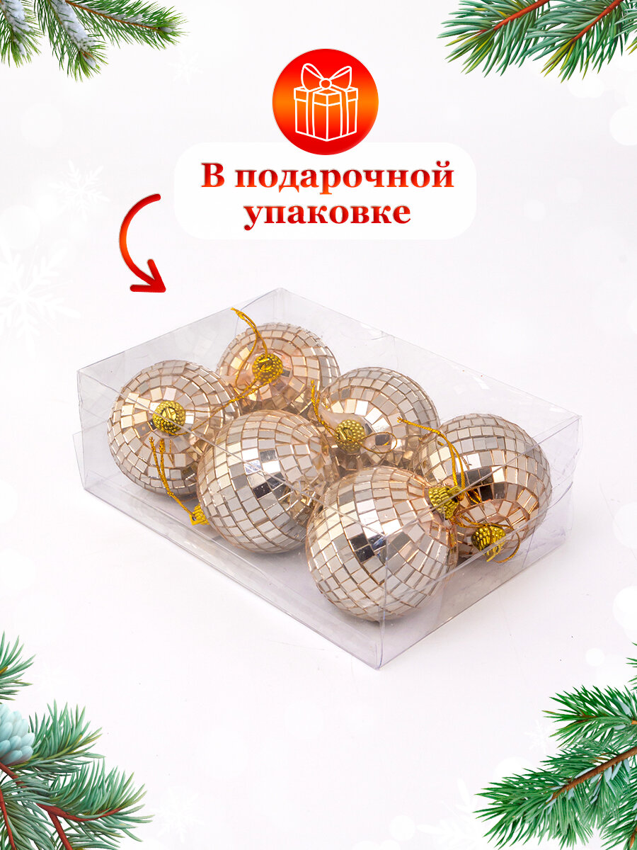 Елочные игрушки диско шары, набор 6 штук, размер 6 см, цвет розовое золото интересное: