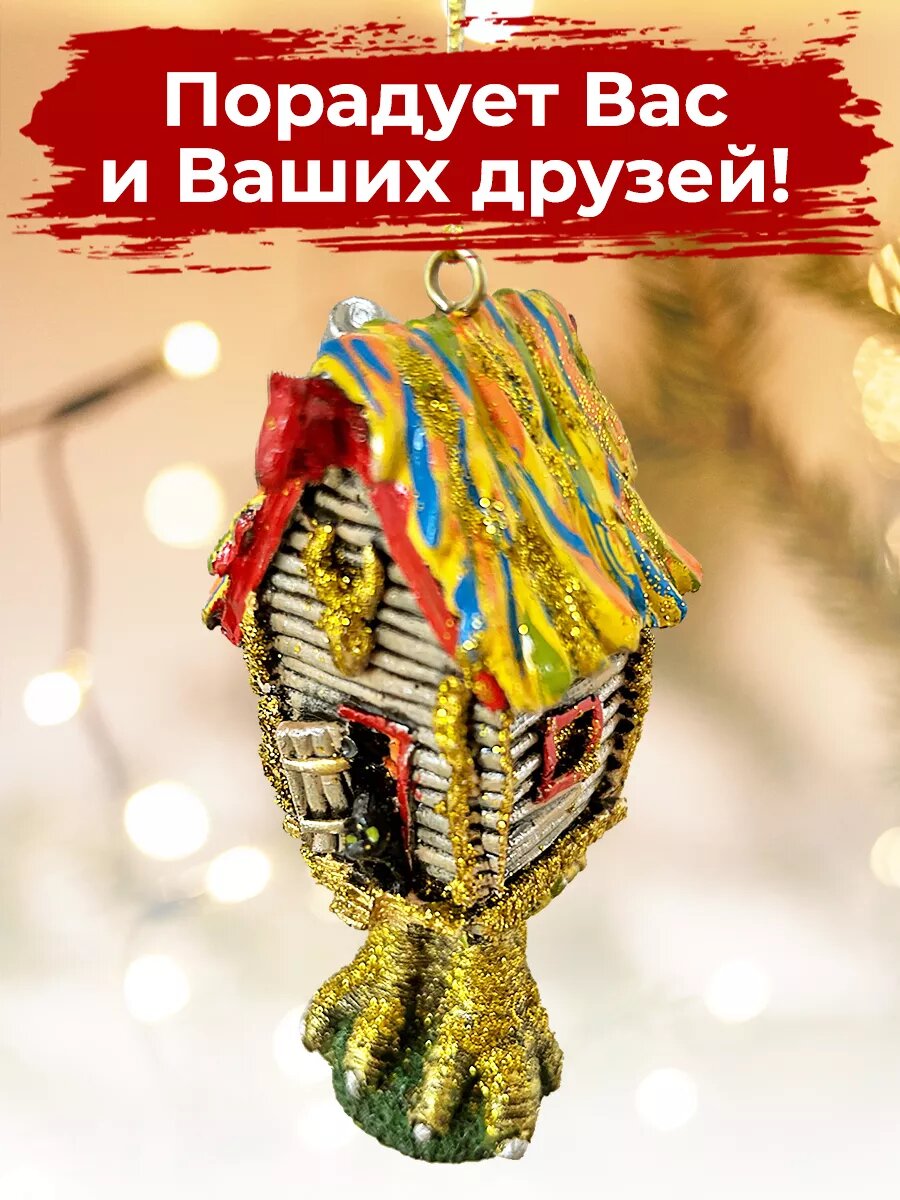СохранитьИзбушка на курьих ножках, новогодняя игрушка на елку, 10 см, полистоун, ручная роспись, АБ Сувениры интересное: