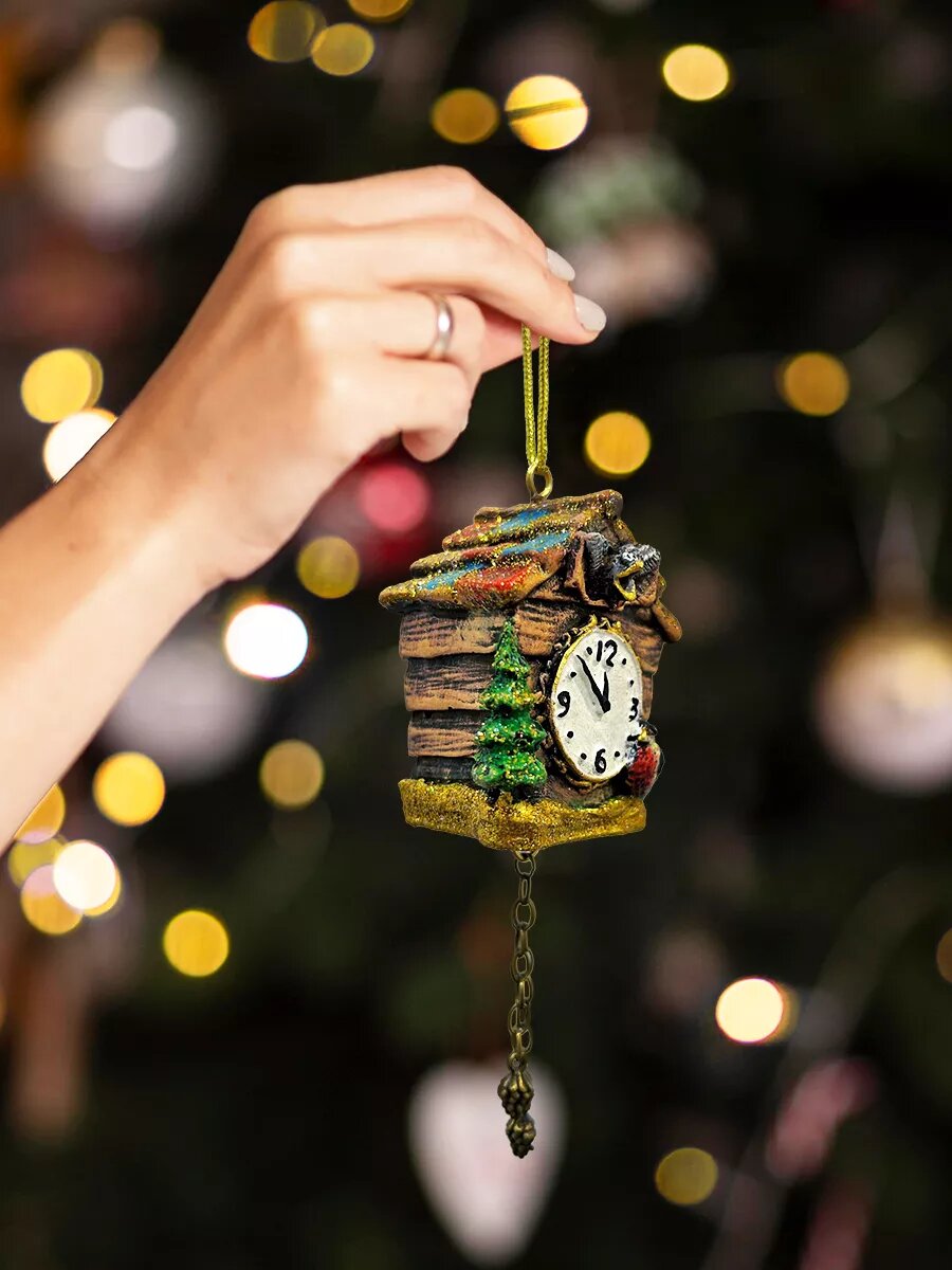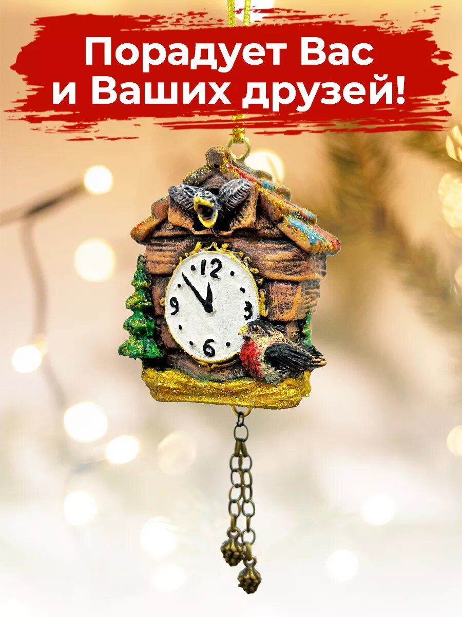 Купить Елочная игрушка часы с кукушкой, 6,5 см, поликерамика, АБ Сувениры