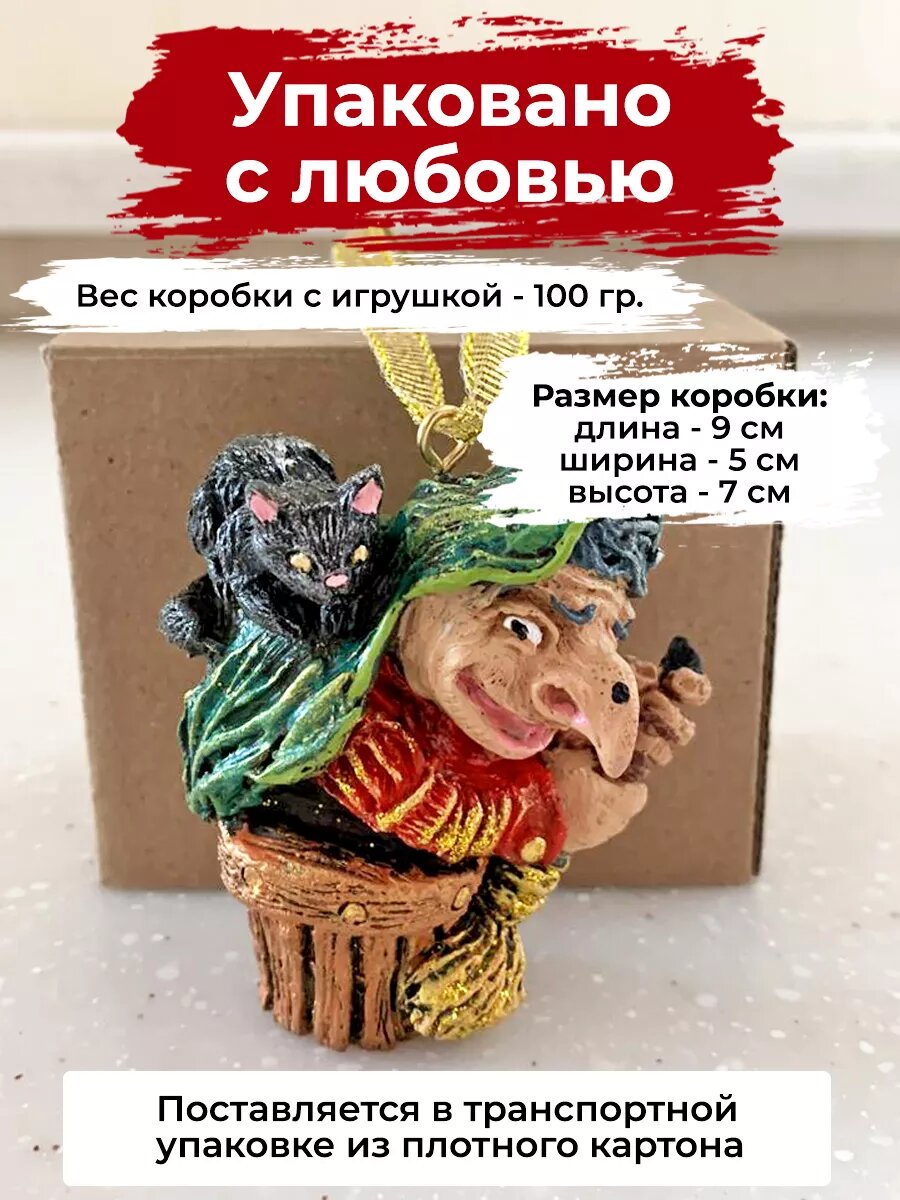 Купить Баба яга на елку, новогодняя игрушка, полистоун, 7 см, АБ Сувениры